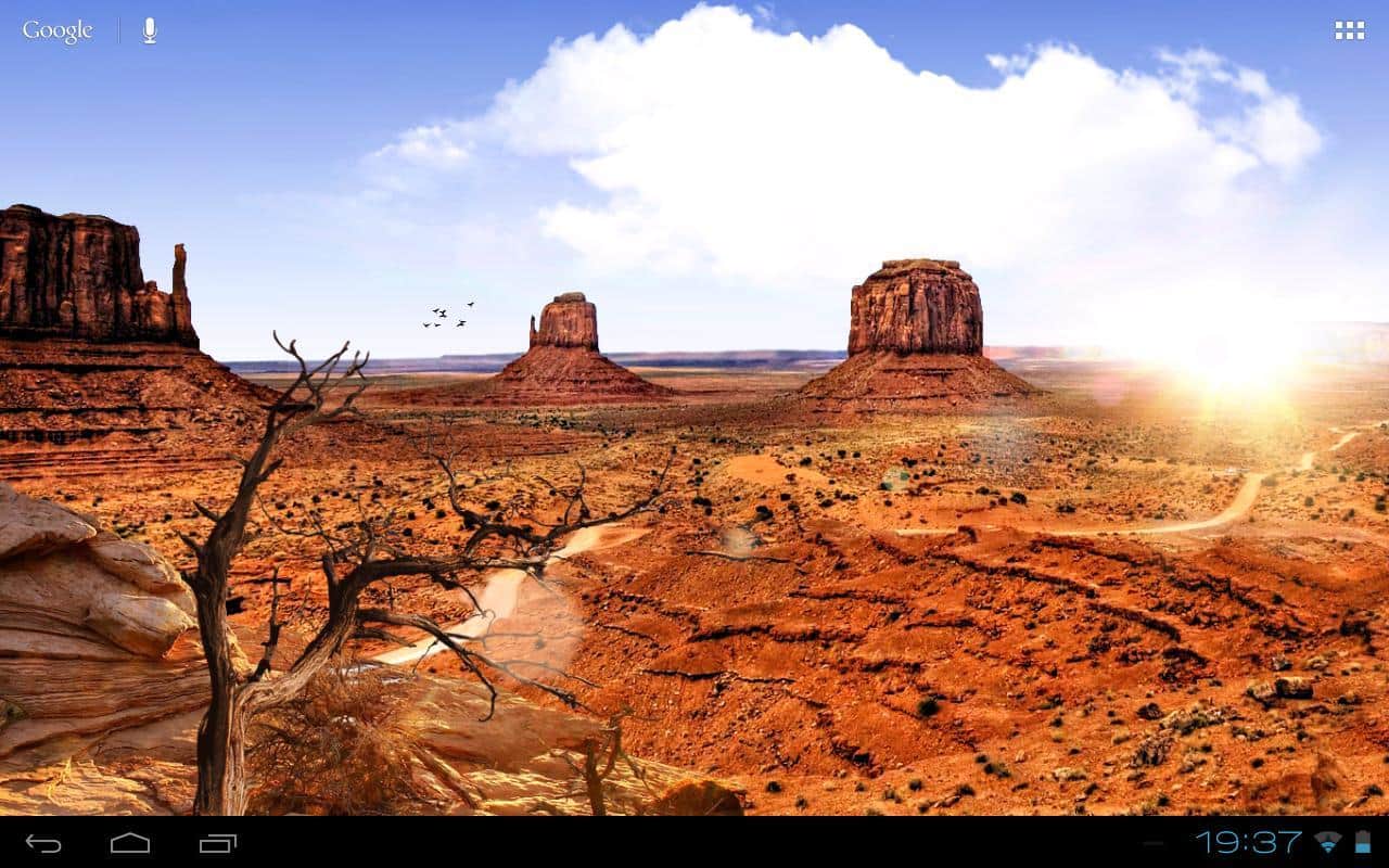 Grand Canyon Live Wallpaper - потрясающие живые обои для андроид с видом на Великий каньон. Установите эти шикарные обои на экран своего смартфона и пейзаж жаркой пустыни с каньоном будет напоминать Вам вестерн. Прям, почувствуй себя ковбоем! Из анимации только плывущие по небу облака!
