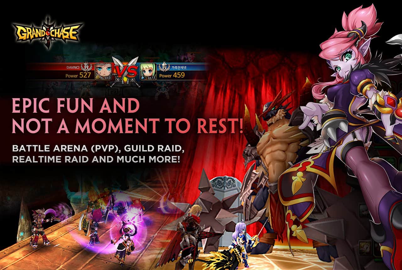 GrandChase M : Action RPG – соберите свой непобедимый отряд воинов и сразитесь с силами зла. Могущественные ведьмы и чудовища грозят полному уничтожению волшебного мира, который вы знаете и вы единственный кто способен противостоять силам тьмы. Соберите свой отряд героев, каждый из которых будет обладать уникальными навыками и оружием в общем, они смогут дополнять силы другу друга в сражениях. Вступайте в схватку с врагами, исследуйте темные подземелья, где таятся враги и выполняйте поставленные миссии. Пополняйте свою команду новыми героями и проверяйте свои силы в боях с боссами и другими игроками. По ходу игры не забывайте улучшать своих воинов, делая их более сильными и выносливыми.
