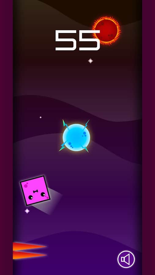 Gravity Cute Surfers – увлекательная аркада на андроид, где вы будете управлять забавным героем и путешествовать в космосе. В этой игре вы будете менять направление гравитации и тем самым обходить многочисленные преграды у себя на пути. Обычно гравитация направлена вверх, но не в этой игре. Касайтесь экрана своего телефона или планшета и меняйте гравитацию перемещая героя в левую или в правую сторону уклоняясь от падающих звезд и шипов. Исследуйте бесконечное космическое пространство и набирайте очки. Весело проведите свое время играя в эту игру и наслаждайтесь простым управлением.