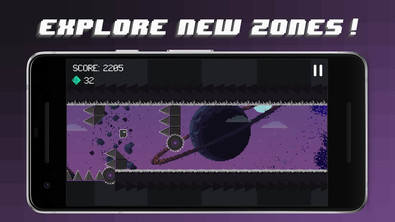 Gravity Dash: Endless Runner - хардкорный пиксельный ранер с элементами платформера геймплей которого проходит в горизонтальном режиме. На первый взгляд игра может показаться довольно обычной, ведь ваша задача просто преодолевать различные уровни при этом избегая ловушек и собирая призы, в целом так и есть, однако разработчики реализовали и несколько интересных особенностей. Так, каждая локация генерируется случайно, а необычная физическая модель потребует от вас не только терпения, но и ловкости, а так же скорости реакции.