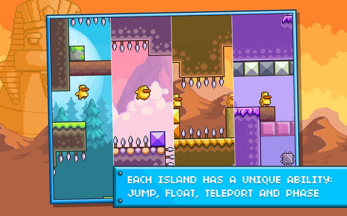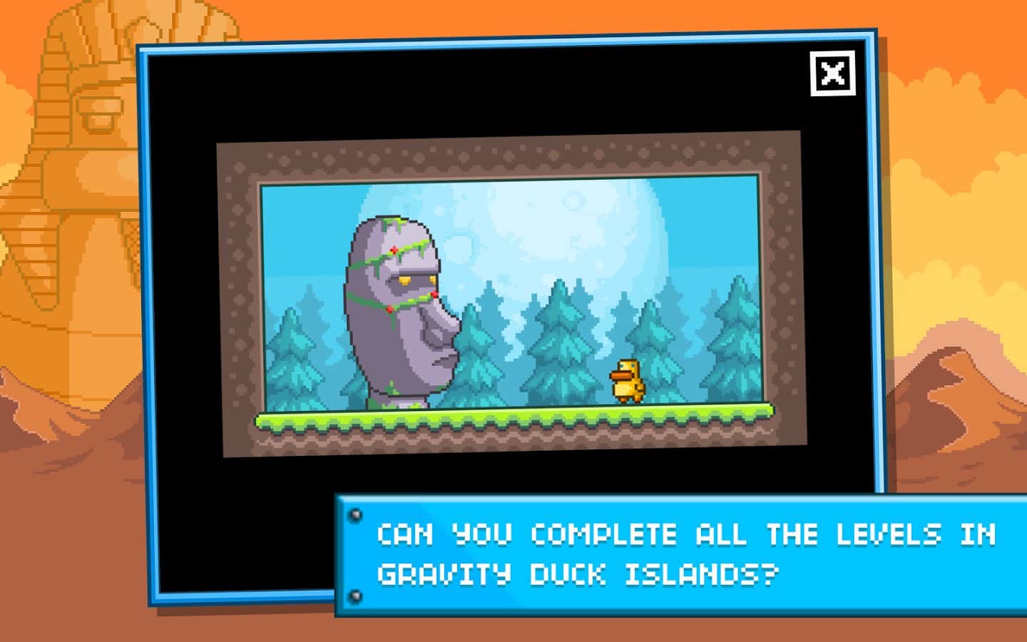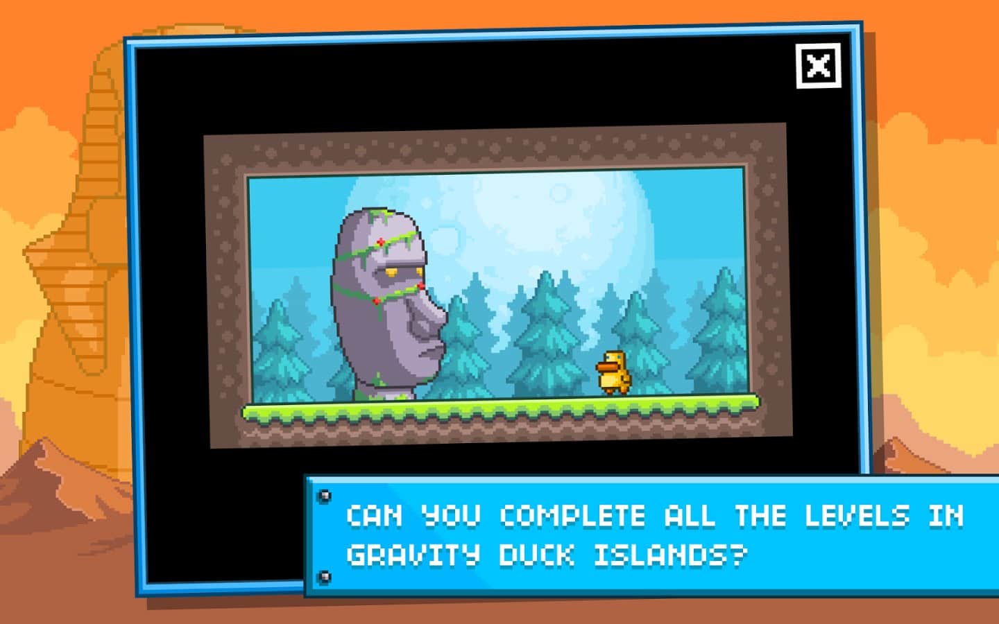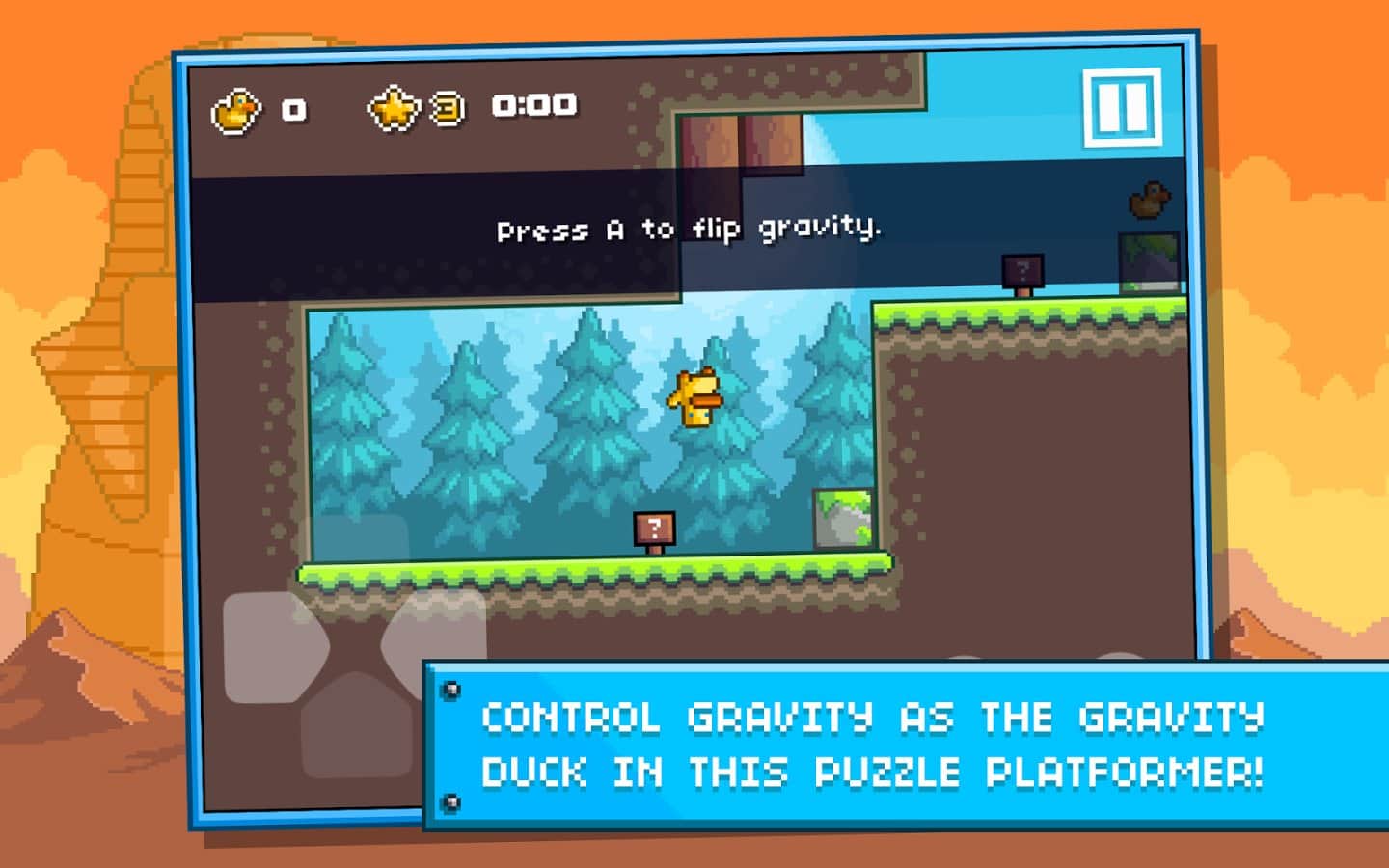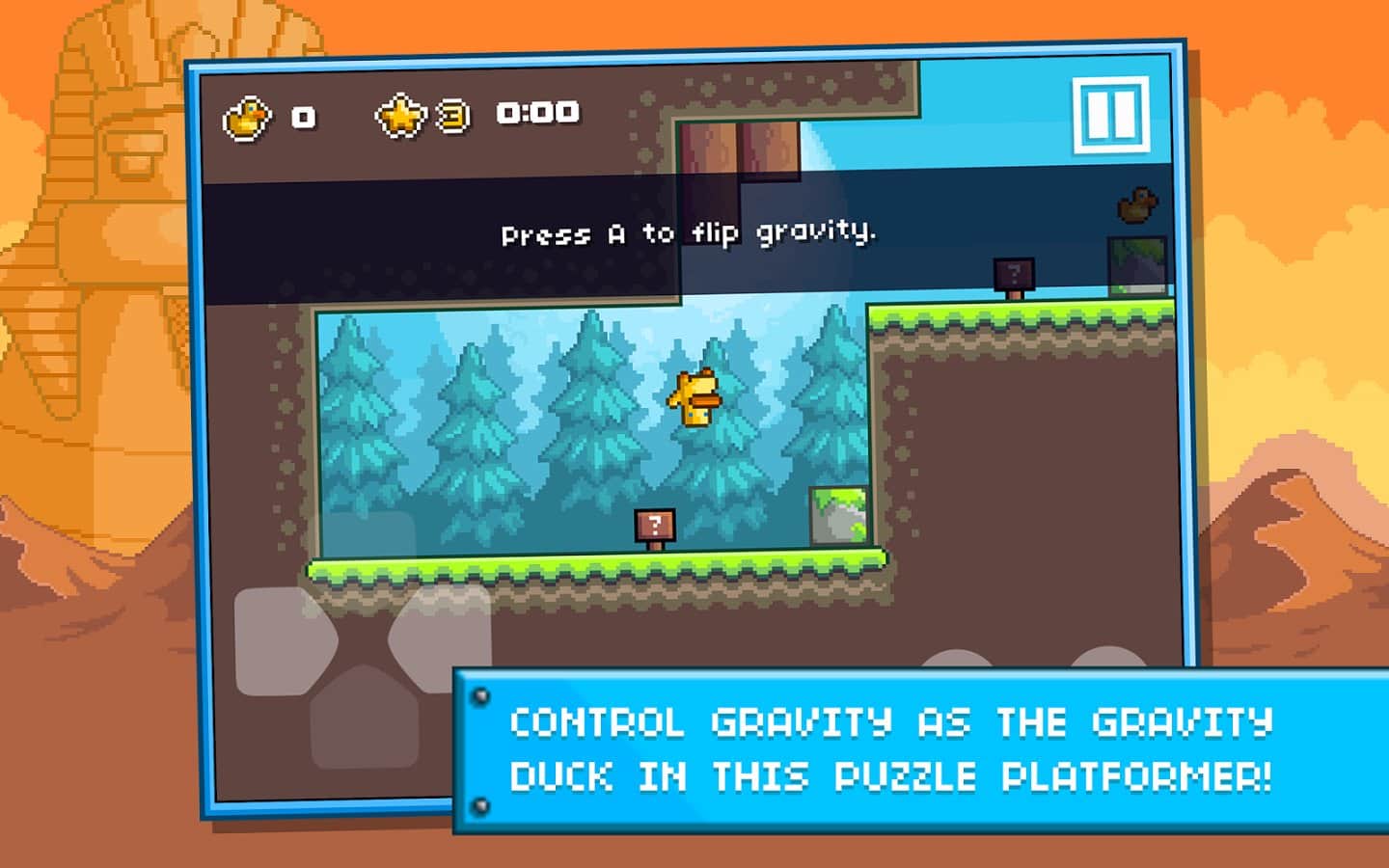 Gravity Duck Islands - Великолепная аркада в которой одна маленькая утка сломает всю вашу логику. Это очень упорная утка, ведь она даже смогла игнорировать законы гравитации. Вас ждет огромное количество уровней, где будет куча ловушек, коридоров и многого другого. Управление в игре максимально простое, все что нужно это прыгать и менять гравитацию, бегая то по земле, то по потолку. И хотя эта игра имеет пиксельную графику, все же она сможет затянуть вас не на один час.