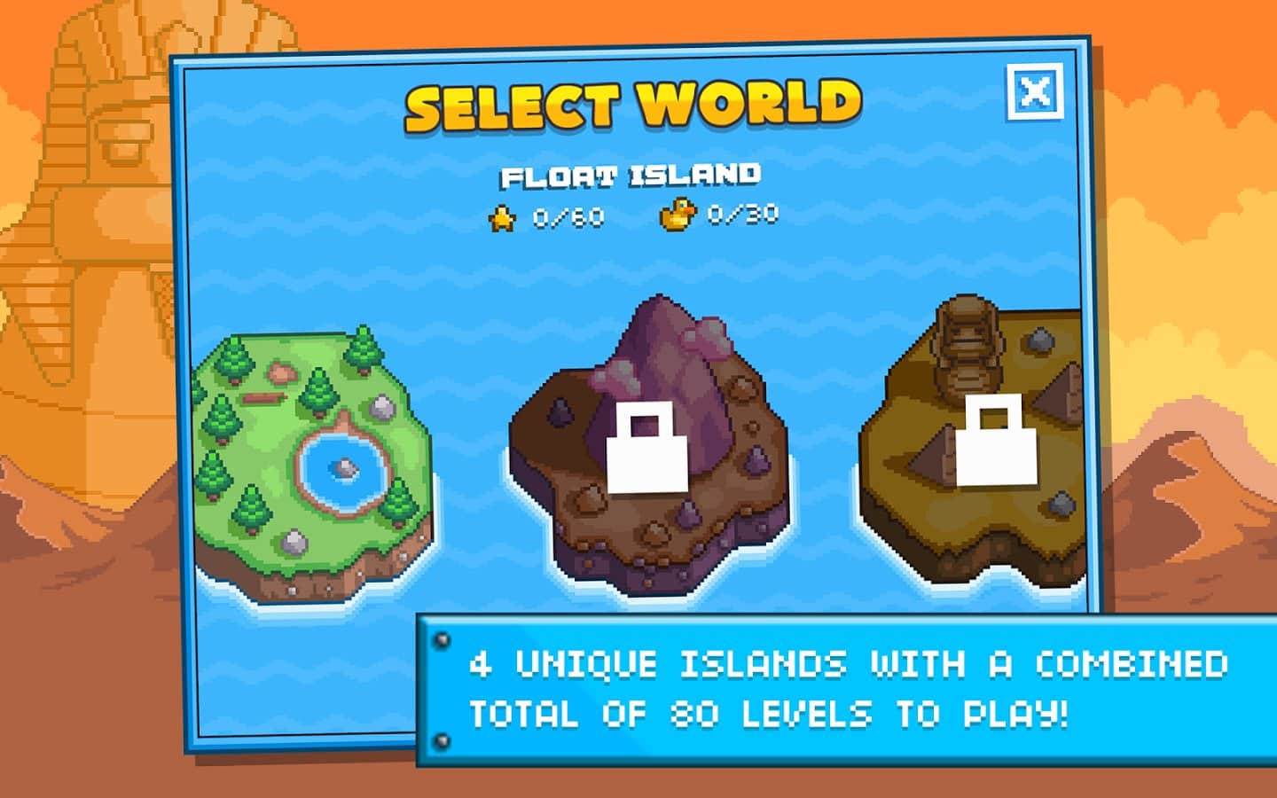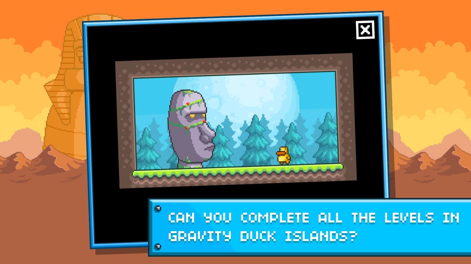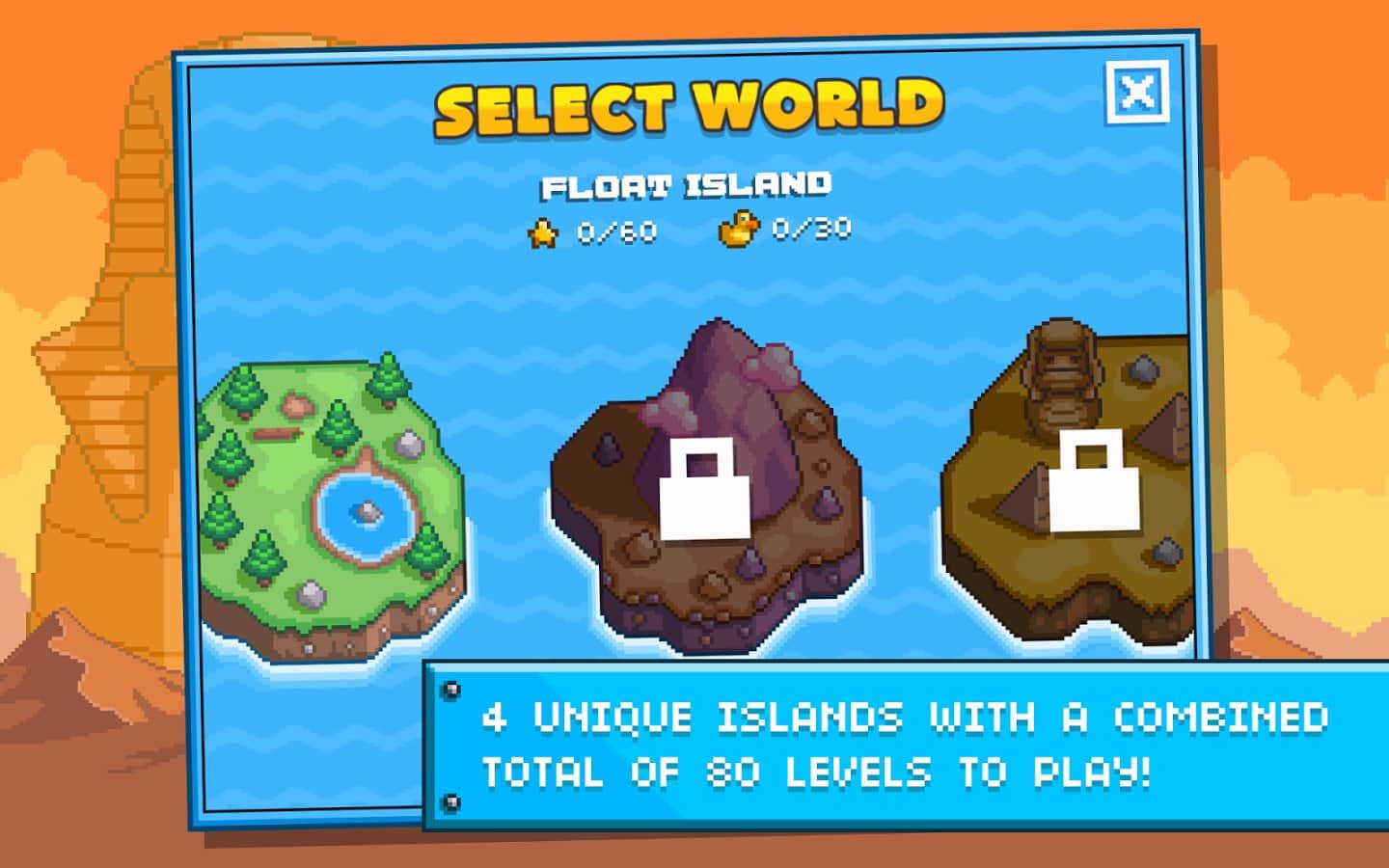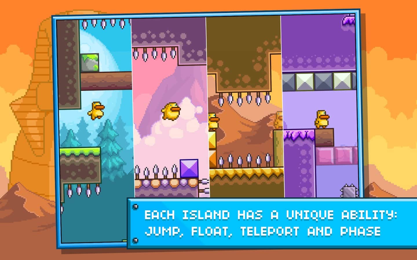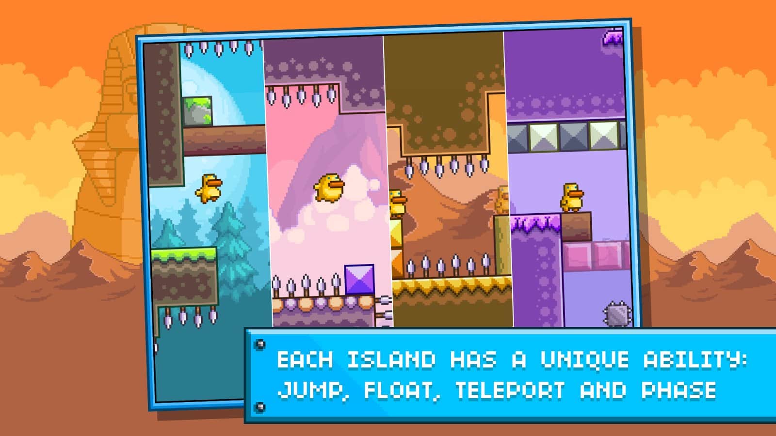 Gravity Duck Islands - Великолепная аркада в которой одна маленькая утка сломает всю вашу логику. Это очень упорная утка, ведь она даже смогла игнорировать законы гравитации. Вас ждет огромное количество уровней, где будет куча ловушек, коридоров и многого другого. Управление в игре максимально простое, все что нужно это прыгать и менять гравитацию, бегая то по земле, то по потолку. И хотя эта игра имеет пиксельную графику, все же она сможет затянуть вас не на один час.