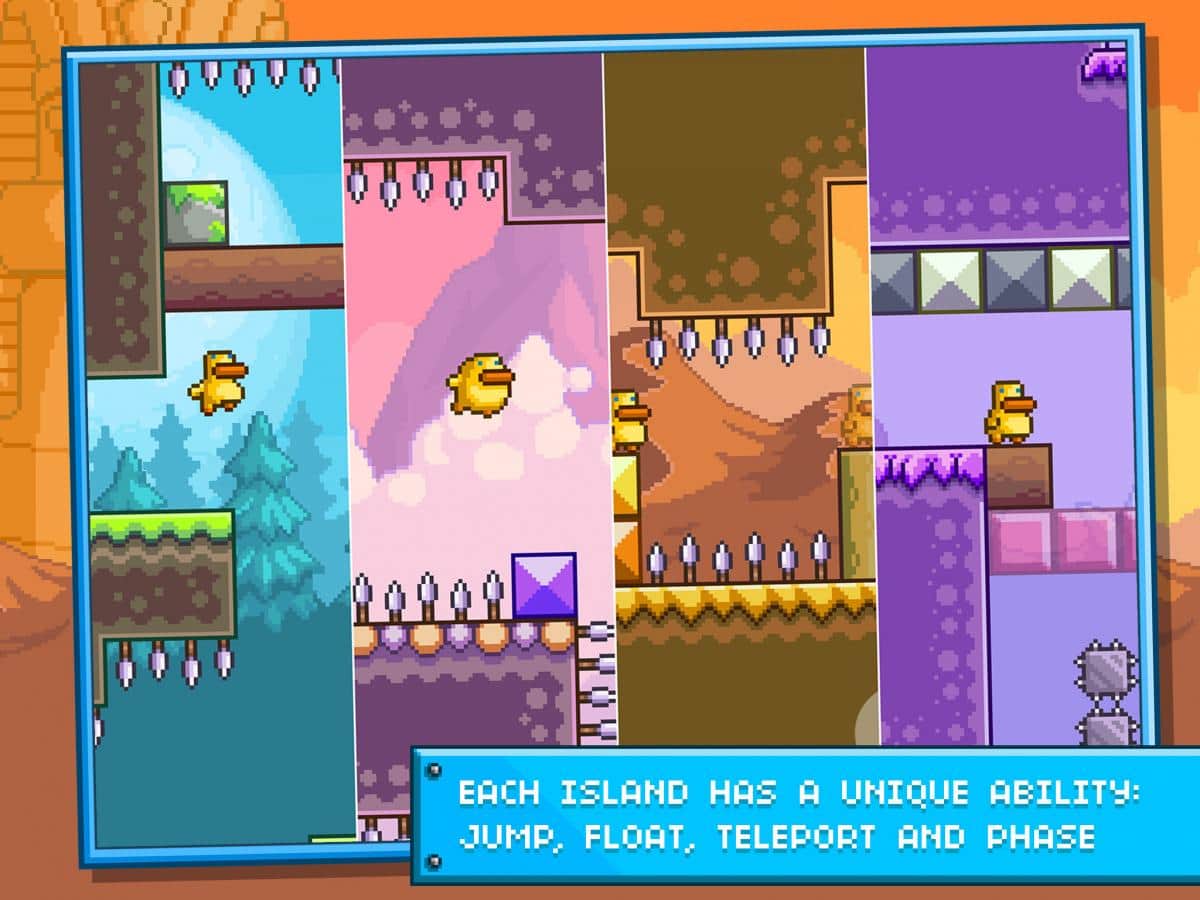 Gravity Duck Islands - Эта история поведает вам про одну маленькую и очень отважную уточку. Здесь вы не найдете глубокого смысла, или же сюжета, это обычная аркада в которой вам нужно проходить уровень за уровнем при этом используя лишь кнопки передвижения, прыжка а так же смены гравитации.