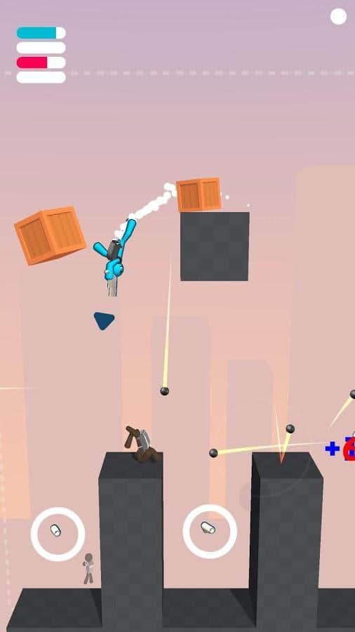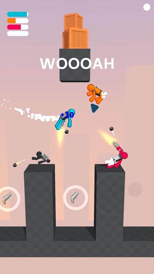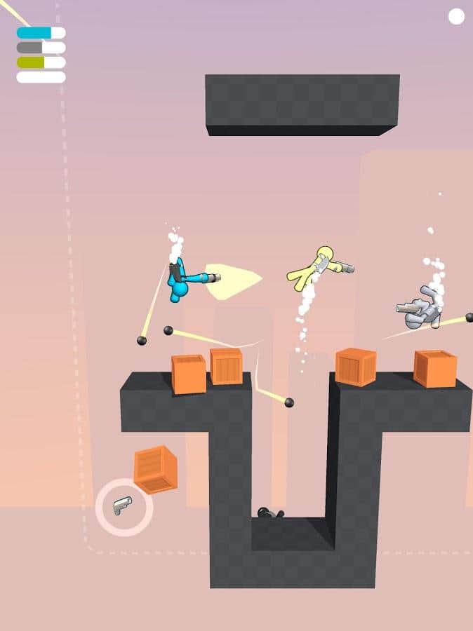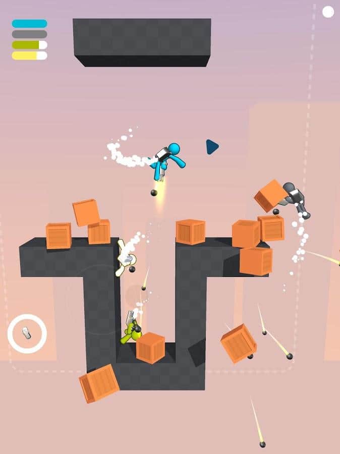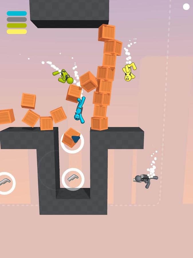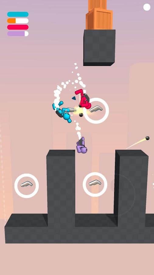 Gravity Duel - проверьте свою прочность и ловкость на арене, выбивая всех игроков за пределы карт. Когда один упал и умер - вы переходите в новый раунд. Побеждает тот, кто дольше всех продержится и выживет. У каждого игрока свой фирменный цвет, который во время игры, вверху слева, показывает шкалу сколько жизни у каждого осталось. На картах присутствуют фиксированные препятствия или передвигающиеся, которые еще больше мешают свободно передвигаться и помогают другим сбросить вас. Поэтому опасайтесь их и правильно используйте, либо сбрасываете вниз, чтоб они вам не мешали. Но при этом, будьте бдительны, ведь ваши враги могут воспользоваться моментом.