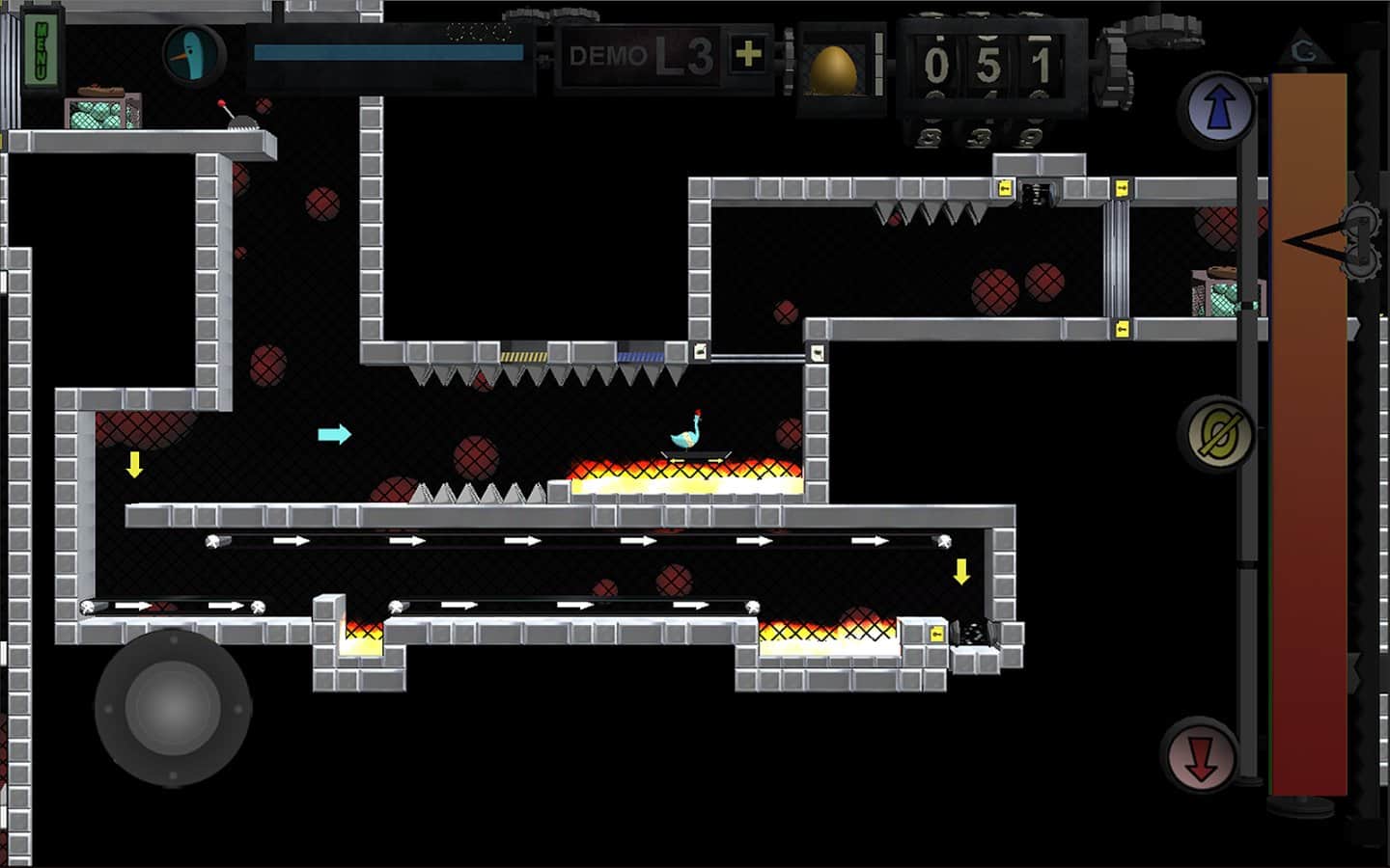Gravity Goose – помогите гусю Гари найти свои потерянные крылья в этом увлекательном платформере на андроид. Наш гусь потерял свои крылья, но взамен им получил специальную перчатку, которая меняет гравитацию и за счет этого он может совершать прыжки и преодолевать препятствия. Передвигайтесь по многочисленным уровням игры и перепрыгивайте через все преграды, препятствия, пропасти и другие ловушки. Попробуйте отыскать потерянные крылья и изменяйте силу гравитации, чтобы избежать потерю жизней гуся. Игра порадует вас простым и понятным управлением, большим количеством уровней и режимом обучения на примере нескольких фрагментов игры.
