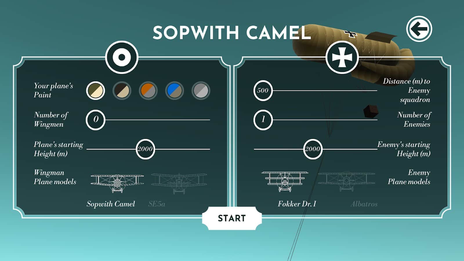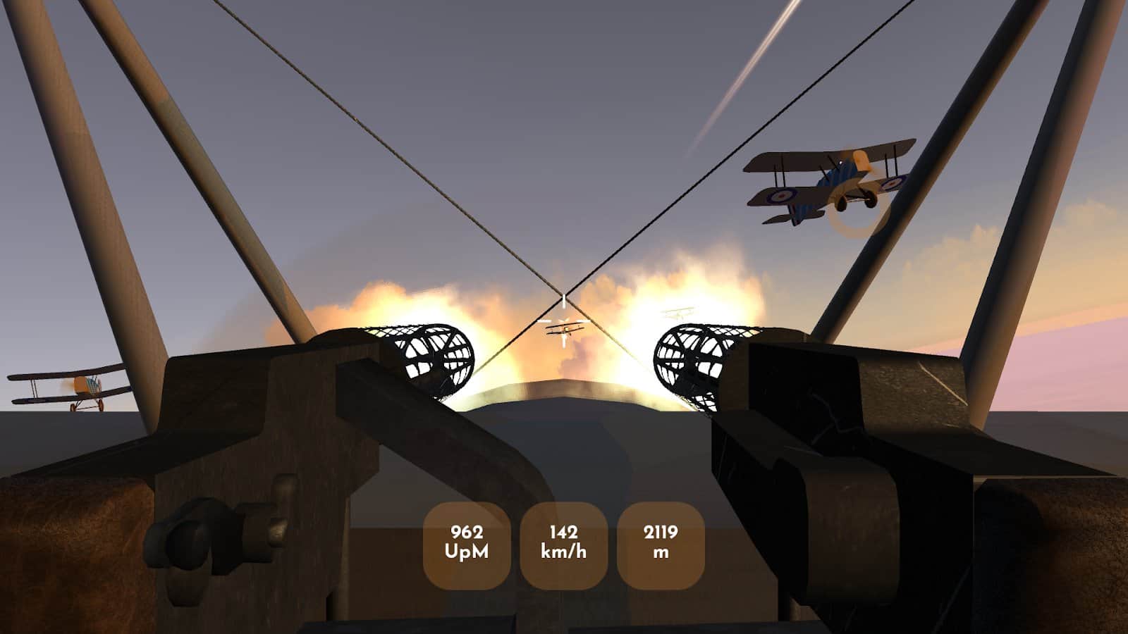 Первая мировая война дала о себе знать целому миру, к сожалению, не с лучшей стороны. Игра Great War Dogfight Lite разработана в поддержку и память этому событию, поэтому теперь есть возможность окунуться в имитацию бесконечных полетов по широкому небу и сражаться с другими самолетами на пути. Выбирайте цвет своего самолета, модель, номер, просматривайте информацию о пройденной дистанции, весе и прочем. Интерфейс разработан с первого лица, поэтому если играть в очках виртуальной реальности, может показаться, что все происходит как на картинке.