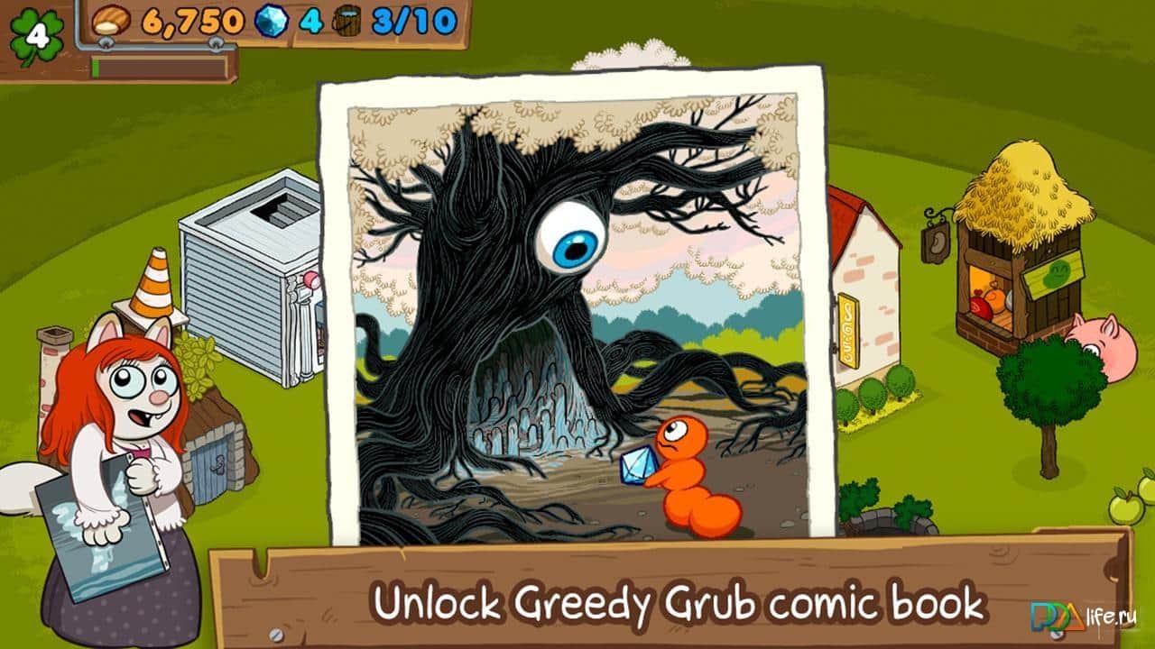 Greedy Grub - в этой игре для андроид вы снова встретитесь с доброжелательным червячком, который будет отстраивать уничтоженный лес. Выполняя разные квесты и занимаясь градостроением, вы начнете свое строительство с небольшой полянки в лесу. Садите и выращивайте деревья, собирайте урожай с них, причем самых разнообразных, ведь игра насчитывает около 40 видов саженцев! Ну и конечно же, куда без инфраструктуры - стройте дома и магазины, создавайте декорации, украшая лес и наслаждайтесь другими возможностями и мини-играми!