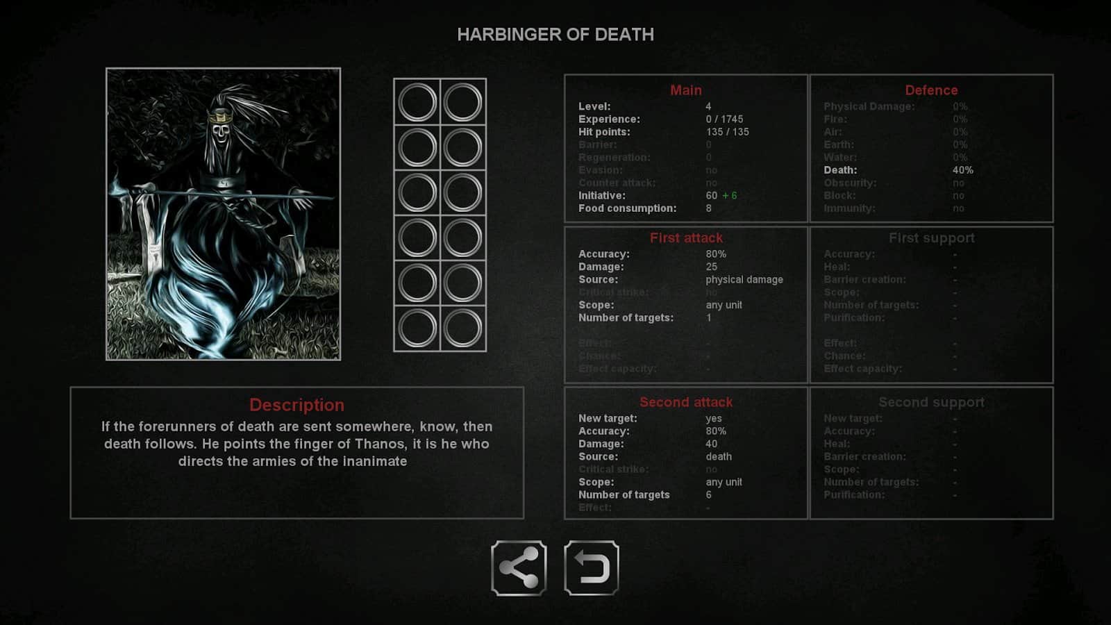 Grim wanderings - Вашему персонажу предстоит отправиться на многие задания, связанные с тщательным обдумыванием стратегий и участием в беспощадных сражениях. Выберите расу и отправляйтесь на первые задания, чтобы там делать выбор, от которого зависит ваша жизнь. Пополняйте своего героя необходимыми ресурсами в магазине, регулярно наблюдайте за статистикой отряда, исследуйте дополнительную информацию про врагов и создавайте новые зелья, а также ищите древние артефакты для возможной помощи в боях. Кем хотите стать: нежитью, гномом, орком, человеком или эльфом?