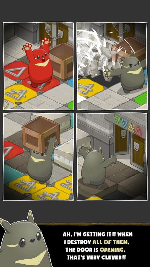 Grooh - отличная головоломка для андроид. Вам предстоит управлять забавным и необычным существом, которое пытается справиться со всякими разноцветными плитками и добраться до следующего уровня. А исследует ваш забавный монстр необычный замок, в котором множество комнат (примерно 119) и где-то находится сокровище! Используйте все - коробки, телепорты, скольжение и пр., чтобы осуществить задуманное! Конечно же у вас будут подсказки, но метод проб и ошибок никто не отменяет! Дерзайте!