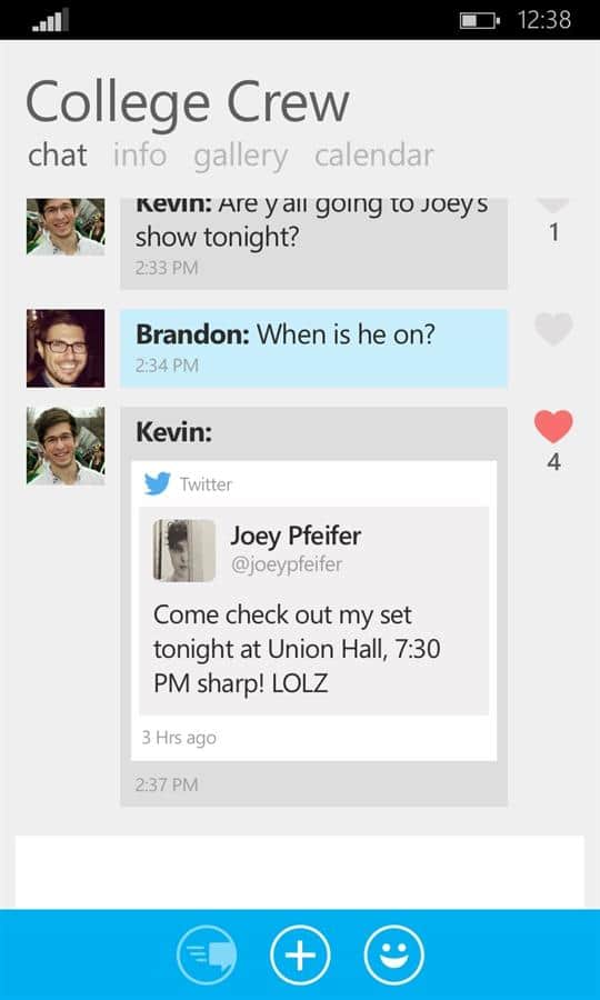 GroupMe - приложение для windows phone, с помощью которого вы легко сможете общаться со своими друзьями. Теперь оставаться на связи и общаться с друзьями и знакомыми стало еще легче и быстрее благодаря этому приложению. Вы отправляете сообщение и его видят все ваши друзья, это как ваша личная социальная сеть.