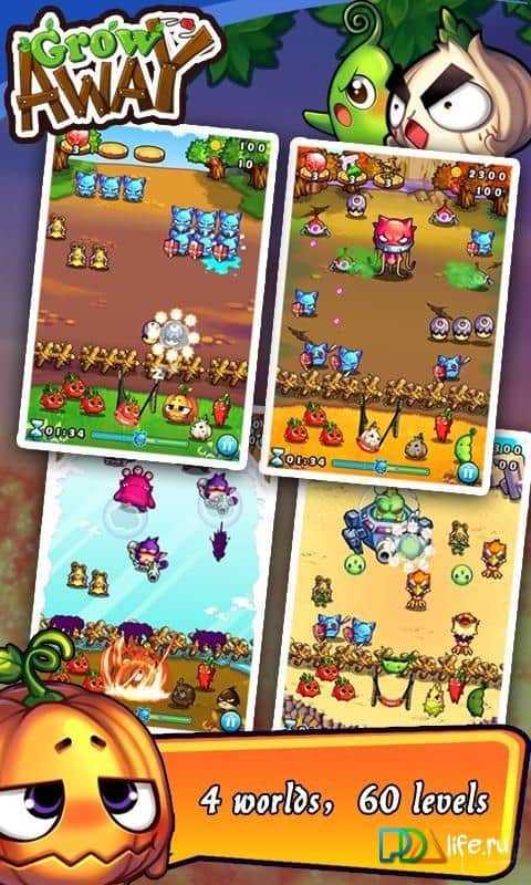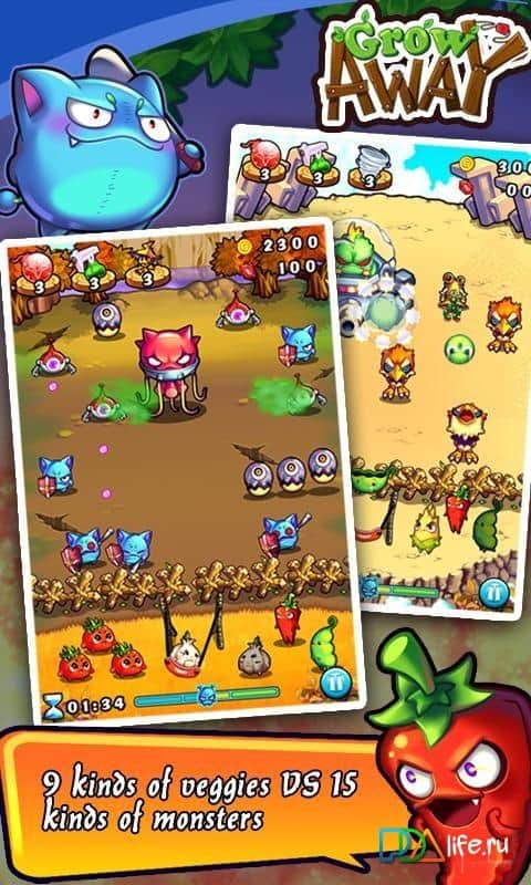 Grow Away - новая увлекательная аркада от студии CHILLINGO. История игры повествует о противостоянии монстров и овощей. Долгое время монстры питались крайне нездоровой пищей, что привело не только к ухудшению здоровья, но еще и полному раскладу личности. Однако вождям монстров удалось убедить своих подопечных изменить диету и обратить свое внимание на вегетарианство. При этом озлобленные монстры очень буквально восприняли информацию и собравшись внушительной командой замыслили уничтожить всех зеленых обитателей мира. Но как оказалось овощи тоже не собирались сдаваться и выстроив огромную катапульту принялись отстреливаться от нападающих. Именно в этом и заключается ваша основная задача помочь представителям зеленого мира одержать победу над плотоядными.