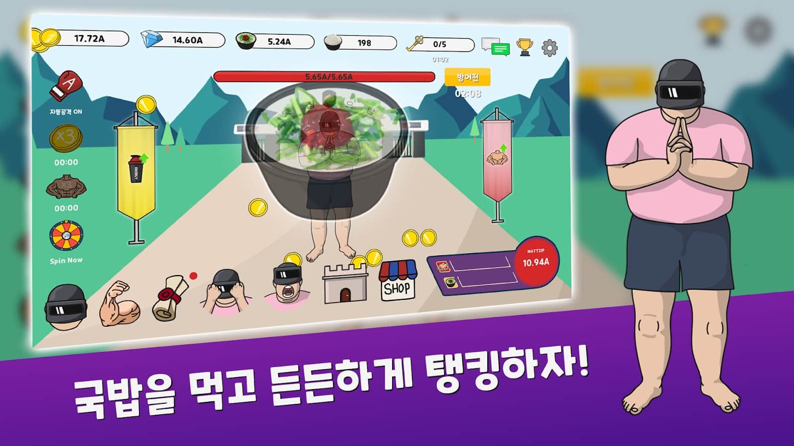 Growing Millhouse VIP - увлекательная игра, где вы будете управлять бойцом. Возьмите под свой контроль отважного героя и выдержите многочисленные бои чтобы отстоять честь семьи. Стань самым сильным героем игры и увеличивай свою силу. Чем больше ты бьешь, тем сильнее становишься. Укрепляйте своего бойца с помощью супа и выдерживайте более сильные атаки. Выдерживайте бои и получайте новое тренировочное снаряжение. Укрепляйте своего героя с помощью супа и восстанавливайте его здоровье.