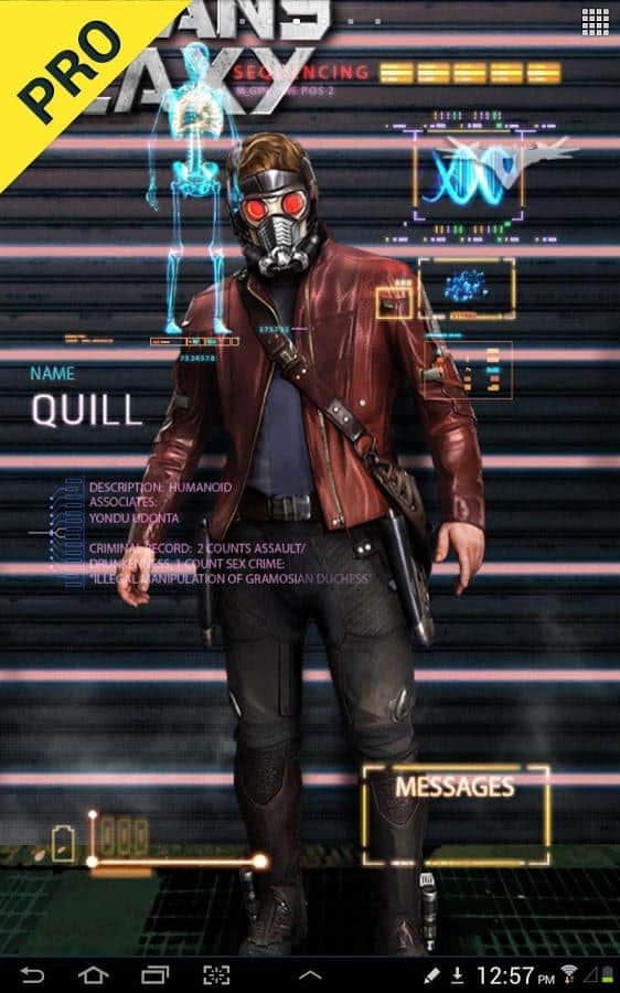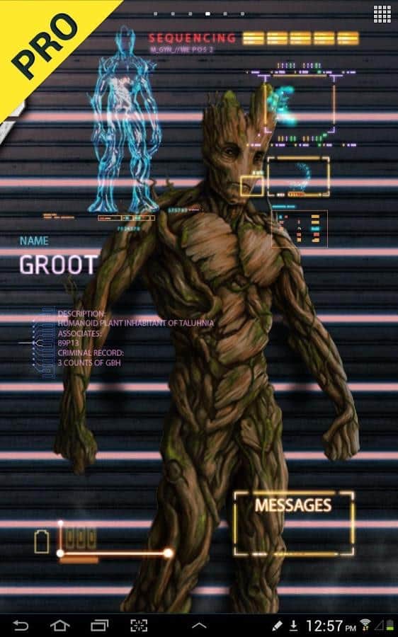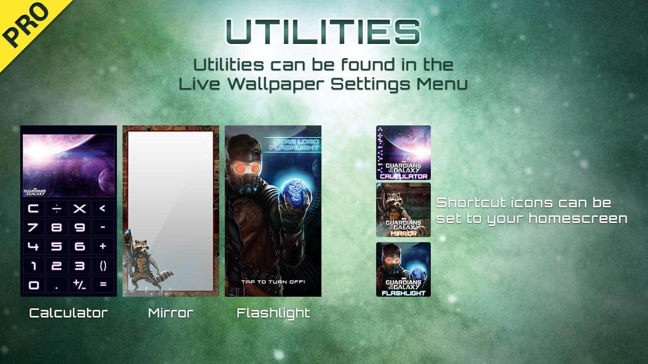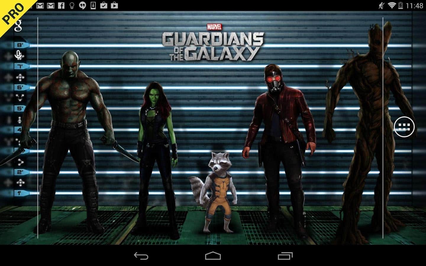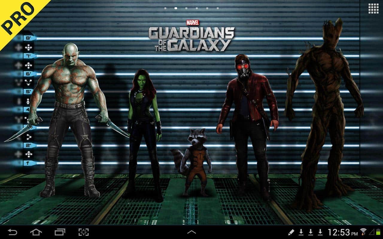 Guardians of the Galaxy LWP – качественные живые обои на андроид с персонажами из нового фантастического блокбастера от студии Marvel "Стражи Галактики". Помимо анимированных сцен и качественных детализированных фонов приложение содержит дополнительные функции такие как: калькулятор, режим зеркало (активация передней камеры), функция уведомлений о пропущенных звонках, sms, электронной почты и многое другое.