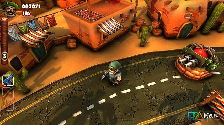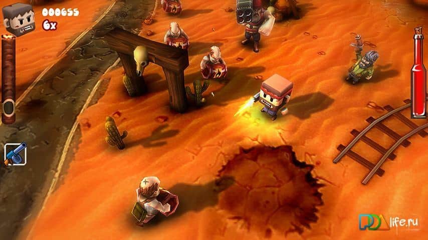 Guerrilla Bob - xитовый shooter для android теперь доступен и вам - бесплатно! Вы путешествуете, если можно это так назвать, по восточной стране. По пути вам встречаются кровожадные и алчные арабы, которых вам волей-неволей придется убирать со своего пути. Благо выбор оружия для расчистки весьма многообразен. Отбирайте деньги у арабов и тогда вы сможете приобрести в магазине все, что пожелаете. А там есть на что положить глаз - обрез, огнемет, автоматы, олдскульные луки, бомбы с таймером, по УЗИшке в руку, взрывные коктейли Молотова, гранатомет и ракетница, а также гвоздь программы – шестистволка. В игре доступны разные режимы - выживание, аркада или роль наемника. Вас ждет огромное количество секретных зон, предлагающих как альтернативное развитие сюжета, так и просто интересные бонусы. В конце каждого уровня - Босс! Как же без них! У каждого свои сильные стороны и уникальное оружие. Игра поддерживает мультиплеер. Что интересно, вы можете сразиться с другом, у которого айфон, т.к. мультиплеер работает на всех платформах. Игра точно и со вкусом приправлена отличным юмором, а также замечательной музыкой и сценарным голосом за кадром. Отличный 3D shooter для android!