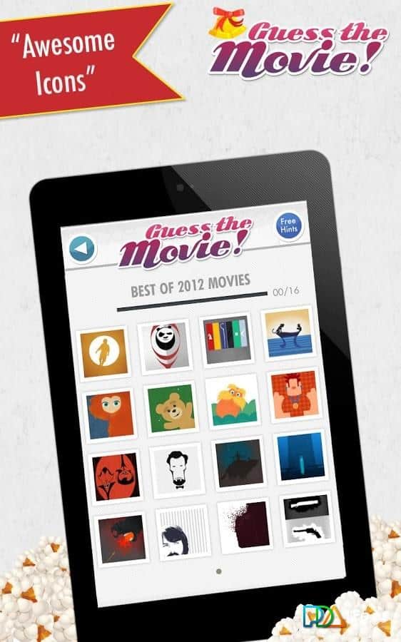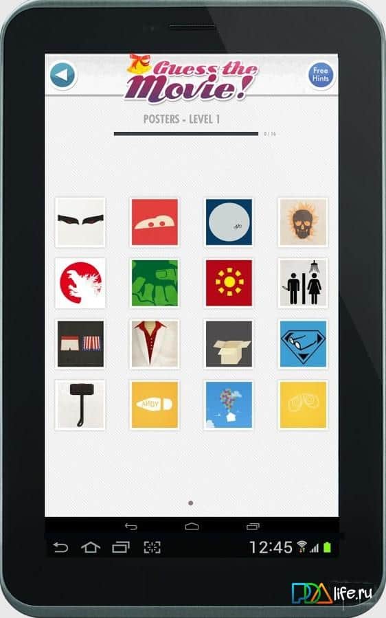 Guess The Movie - Отличное приложение дабы скоротать свое время, и проверить свои познания в области кинематографа. Много качественных плакатов с разнообразными фильмами. Выберите уровень сложности, от простого к сложным. Покажите все свои знания разнообразных фильмов и мультфильмов, узнайте много нового и интересного.