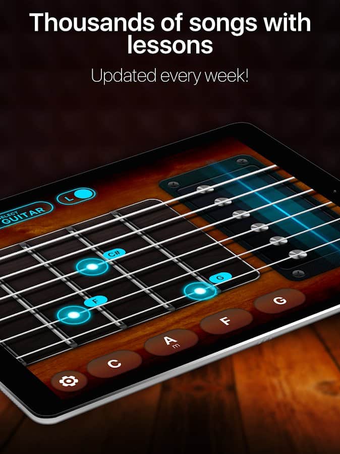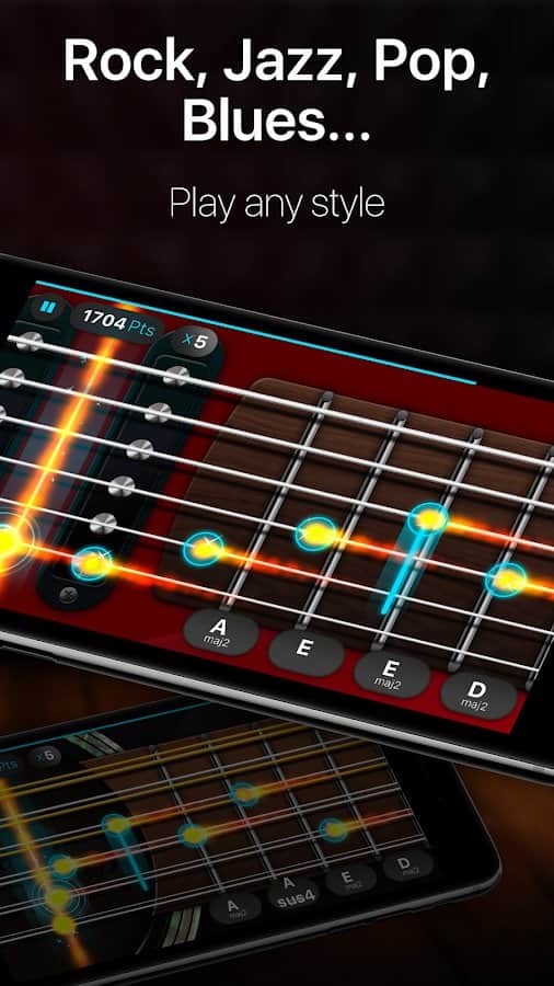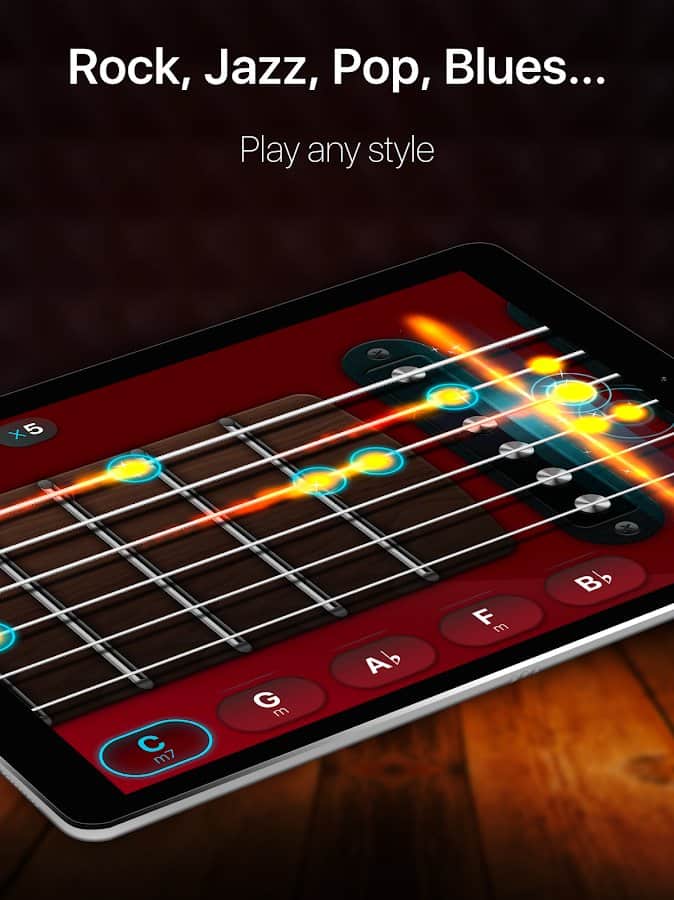 Guitar - play music games, pro tabs and chords! - эта игра позволит вам не только понять принцип игры на гитаре, но так же даст возможность создавать свою собственную музыку прямиком в приложении. Различные уровни сложности и множество уровней, или же свободный режим игры решать вам.