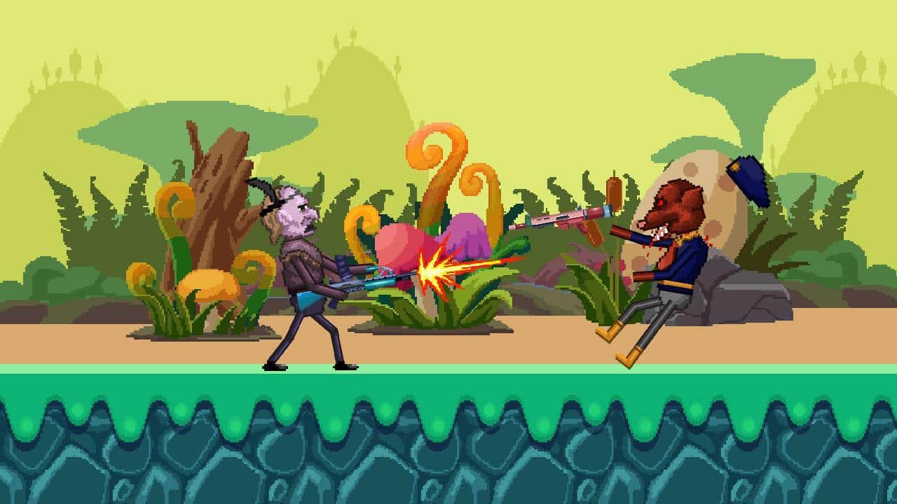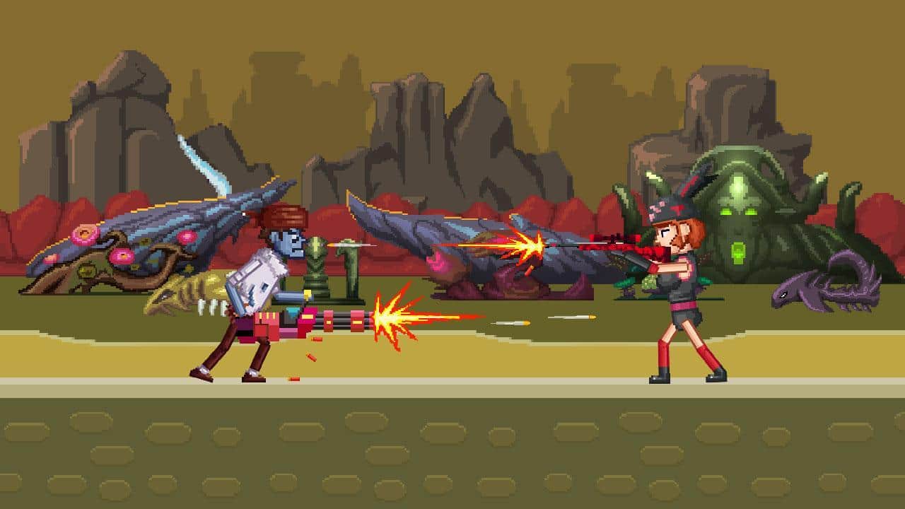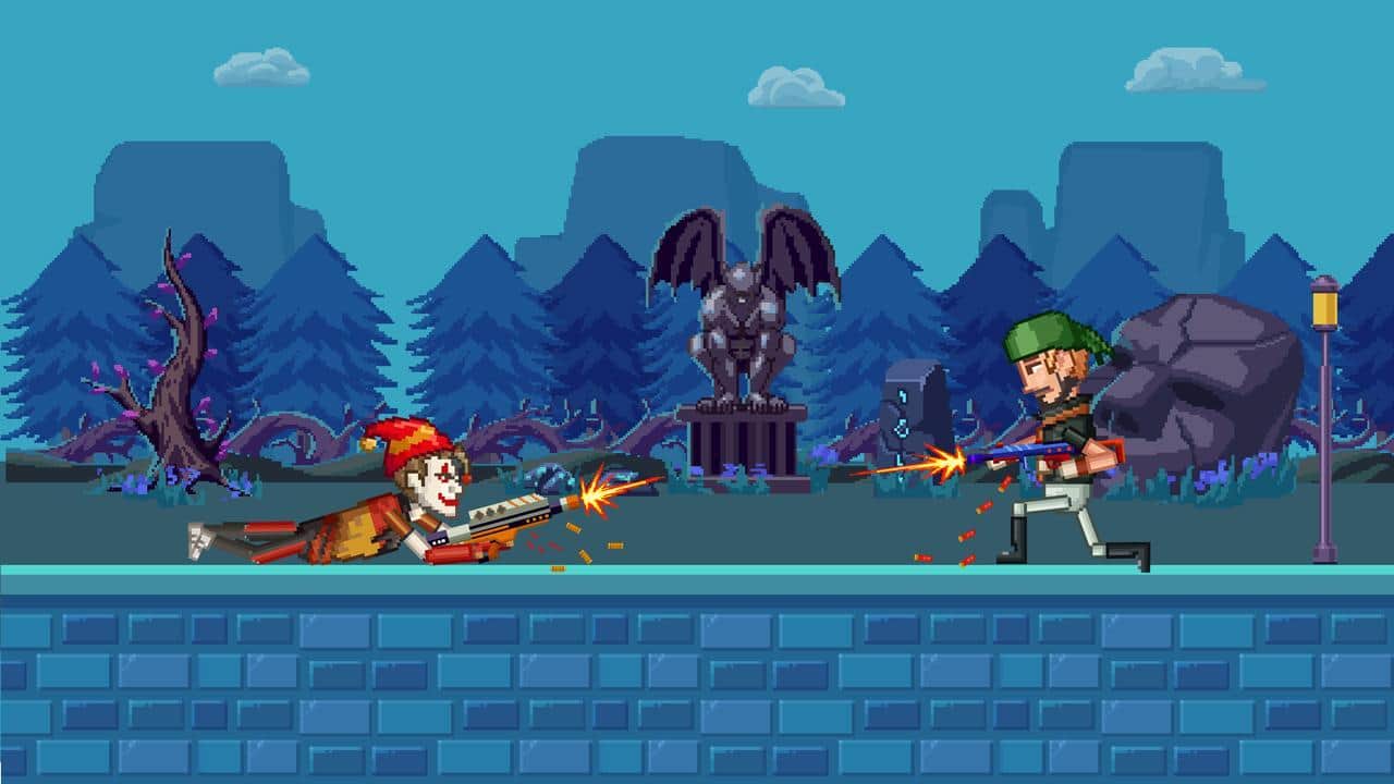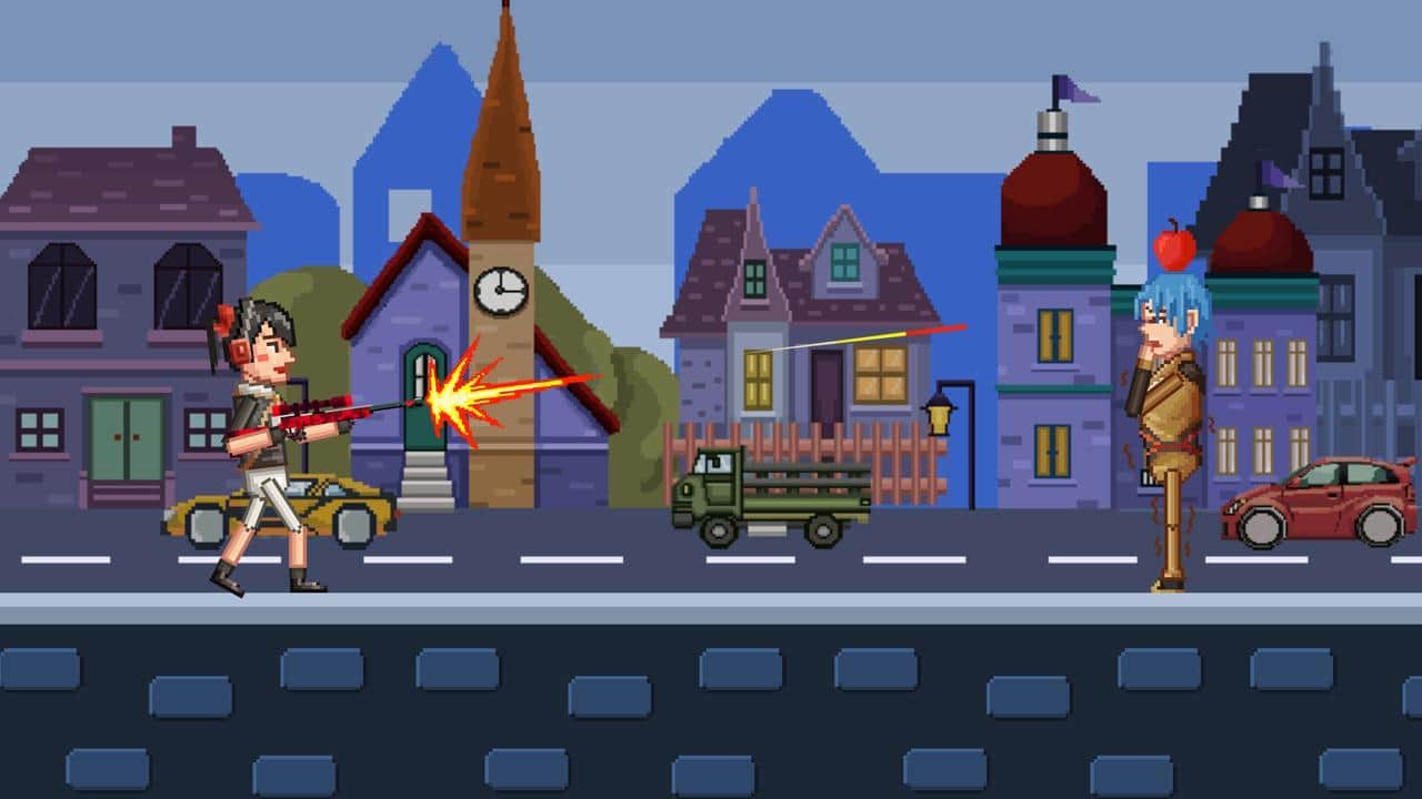 Есть такая популярная, в общем-то, неплохая флеш-игра на ПК "Дуэль ковбоев", так вот, это то же самое, только сменили внешний вид врагов, героев и весь окружающий мир.
