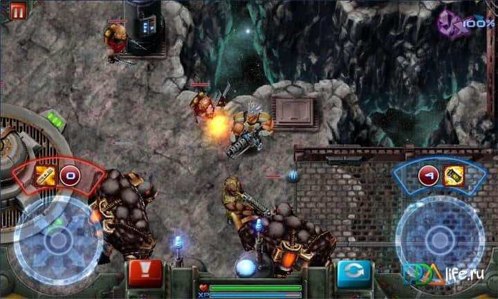 Gun Bros - вашему вниманию представлен шутер с видом сверху для windows phone 7. Вы и ваш напарник проходите локацию за локацией, планету за планетой и уничтожаете врагов везде, где они вам попадутся. Управляете вы в основном вашим непосредственным героем - одним из братьев Ган, а ваш напарник следует рядом и помогает вам справиться с неприятностями.