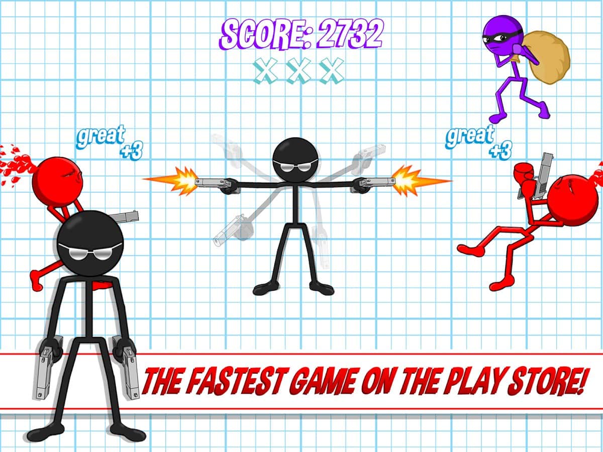 Gun Fu: Stickman 2 - Еще одна игра про всеми известного Stickman! разработчики игры предлагают вам проверить свою реакции. Уничтожайте всех кого уведите на экране. И чем быстрее вы это сделаете, тем больше у вас шанс выжить! Собирайте монетки и открывайте новые и больше разрушительнее оружие! Меняйте вид самого героя.