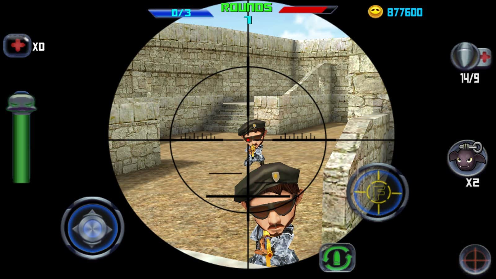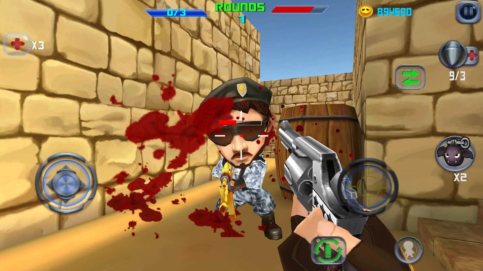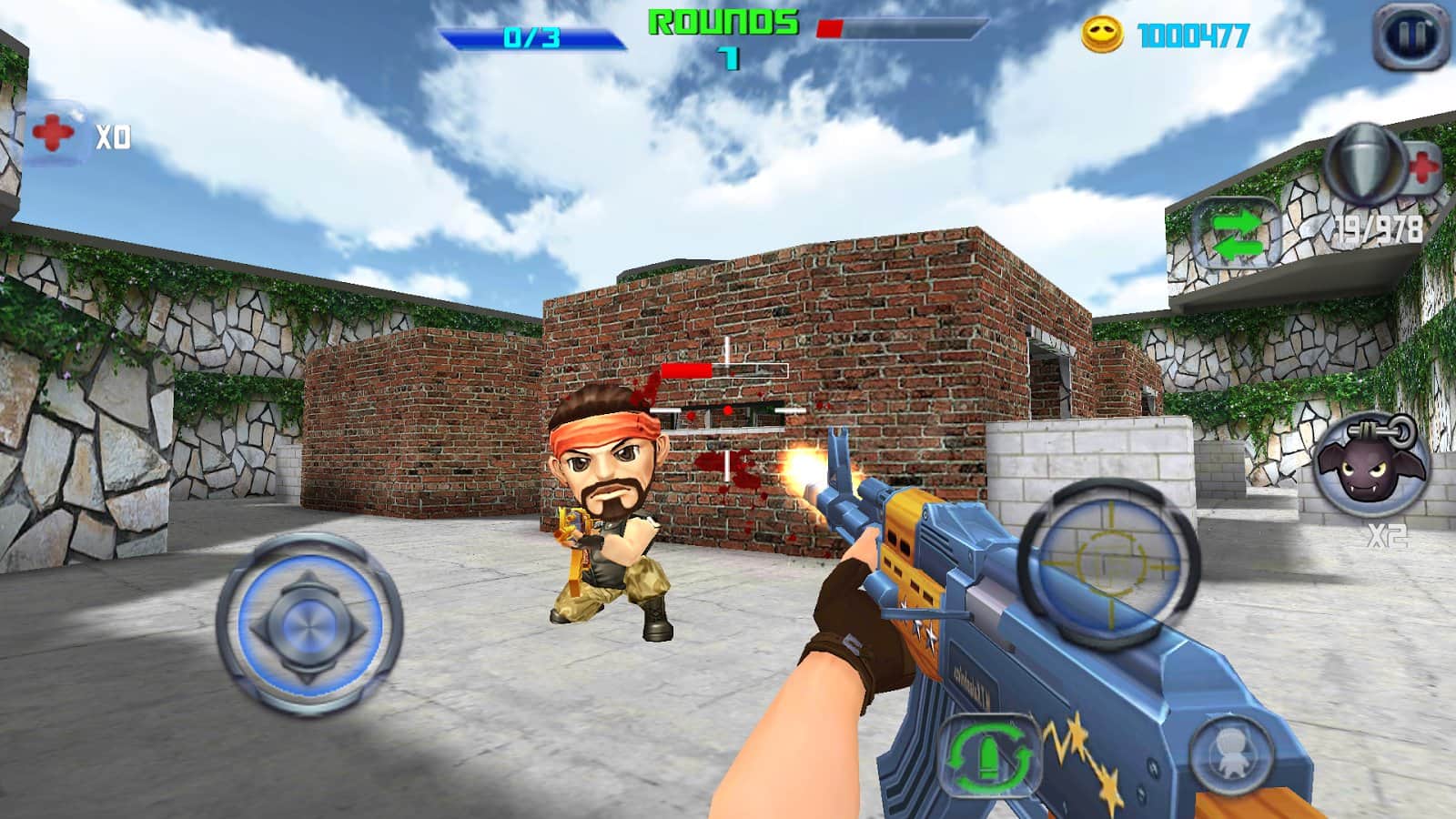 Gun Shoot War Q - Интересный android шутер, с мультяшной графикой с довольно большим количеством оружия и возможности выбора игрового поля. Впрочем, игру можно отнести и к жанру тир. Вас как игрока, должно, несомненно, заинтересовать то, что в любой момент можно выбрать себе количество врагов и вид врагов. Разработчики игры оставили выбор за вами. Теперь будете решать вы, кого именно вам расстреливать.