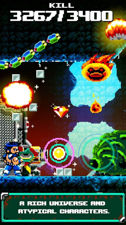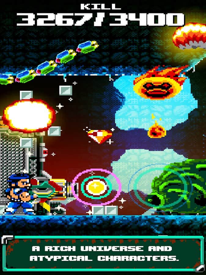 Guns of Mercy – игра на андроид, где вы будете сражаться с огромными монстрами и боссами живущими в подземельях. Эта игра перенесет вас в недалекое будущее, где наша планета превратилась в безжизненную пустыню, после войны с пришельцами и немногочисленные выжившие люди спустились в пещеры, ища там спасение. Исследуйте многочисленные пещеры и ведите непрерывный огонь с монстрами обитающими в них. Применяйте для борьбы с врагами мощное оружие и современное вооружение. Стремительно передвигайтесь по тёмным пещерам и собирайте на своем пути многочисленное золото и кристаллы. Открывайте для себя новых героев и оружие.