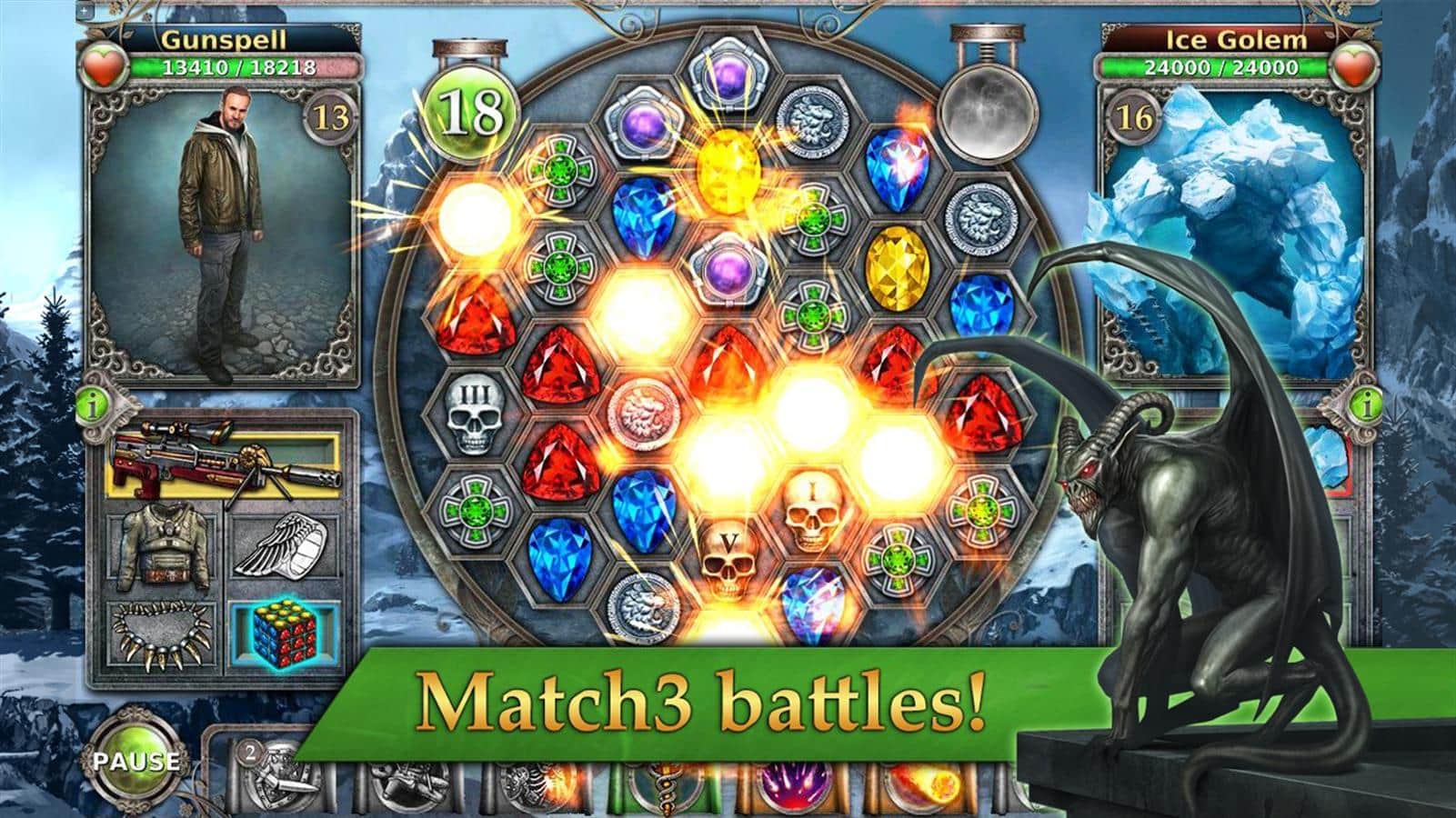 Gunspell - игра с уникальной смесью жанров РПГ, три в ряд и классической стратегией. В этой игре вам предстоит вступить в могущественный орден и защищать Землю от ужасных монстров и чудовищ пытающихся захватить ее. Начните свое путешествие прямо сейчас и погрузитесь в невероятный мир монстров, захватывающих сражений, интересных квестов и мощного оружия. Восстанавливайте выносливость в увлекательных мини-играх совершенно бесплатно. Мир Gunspell полный монстров и вампиров ждет вас с распростертыми объятиями.
