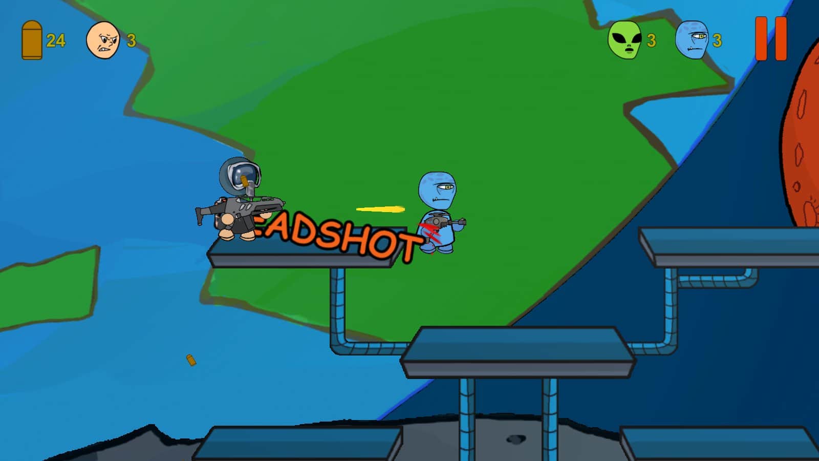 GunWar 2D Shooter – шутер на андроид, где вы будете в одиночку противостоять армии врагов. Берите в руки оружие и перемещайтесь по различным мирам, ведя непрерывный огонь по врагам. В этой игре вашей главной задачей будет выстоять в этой динамичной войне с врагами и используя различное оружие уничтожить всех противников. Перемещайтесь по различным платформам и уничтожайте врагов, а также толкайте их в пропасти. Всего в игре представлено 6 различных миров, 48 неповторимых уровня, 12 смелых противника, 24 вида оружия и 18 костюмов для героя, чтобы сделать его уникальным. Играйте в эту игру и добейтесь рекордных результатов.