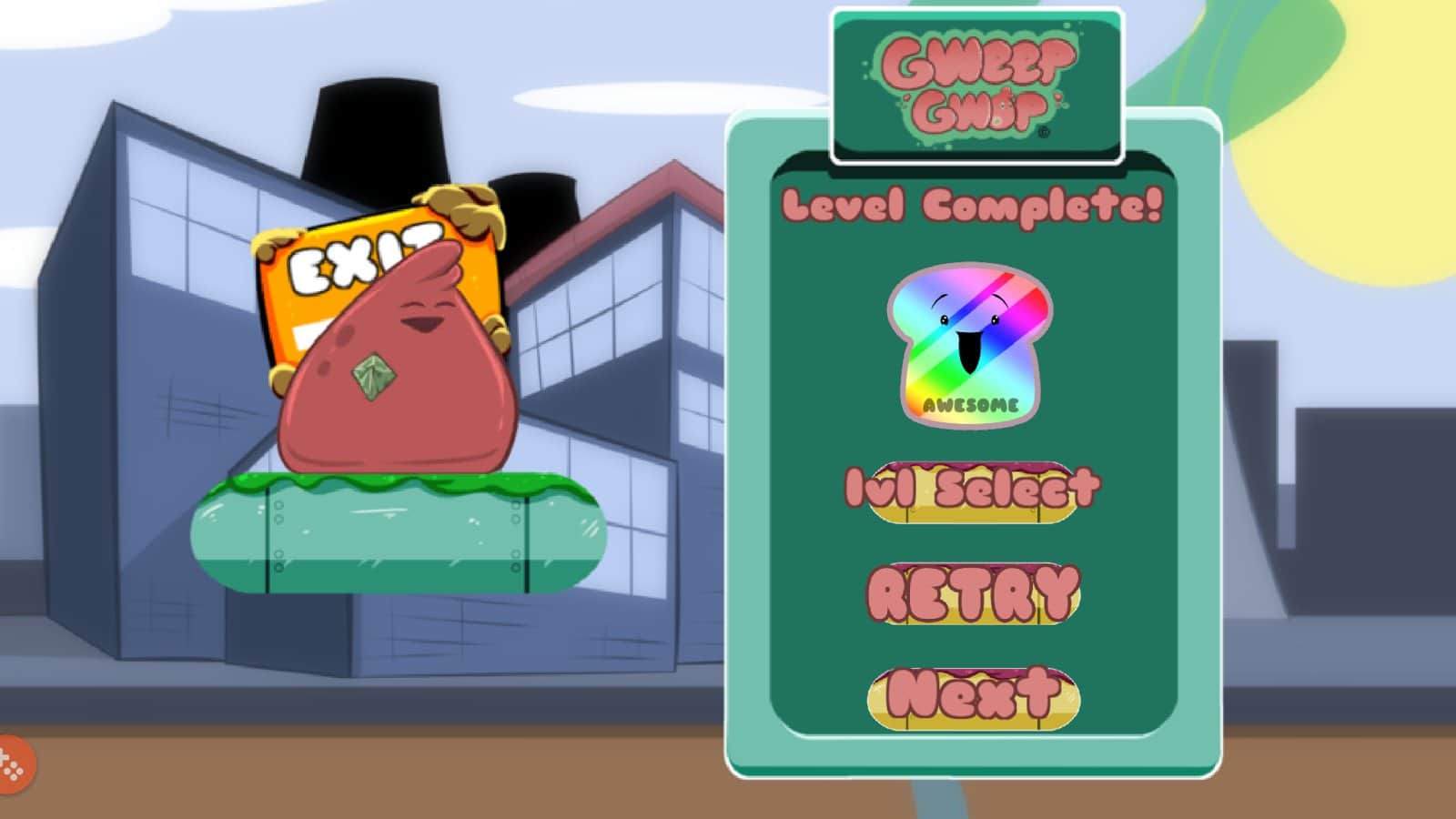 Gweep Gwop - аркадная головоломка, сюжет которой разворачивается вокруг кусочка клубничного желе, упавшего с бутерброда работника электростанции. По воле случая желейкая упала на радиоактивную частицу, от чего приобрела не только способность самостоятельно перемещаться, но и мыслить. Обретя разум наш герой вдруг понял что просто не может жить без своего лучшего друга, арахисового масла и осознав сей факт отправился через лабиринт комнат и помещений станции, дабы воссоединиться с лучшим другом. Игровая механика Gweep Gwop выполнена в уже знакомом нам стиле, при помощи свайпов направляйте траекторию движения и силу прыжка желе, тем самым перепрыгивая по платформам и преодолевая различные препятствия. Конечно же придется обратить внимание и на различные призы и бонусы, которые помогут вам достичь цели.