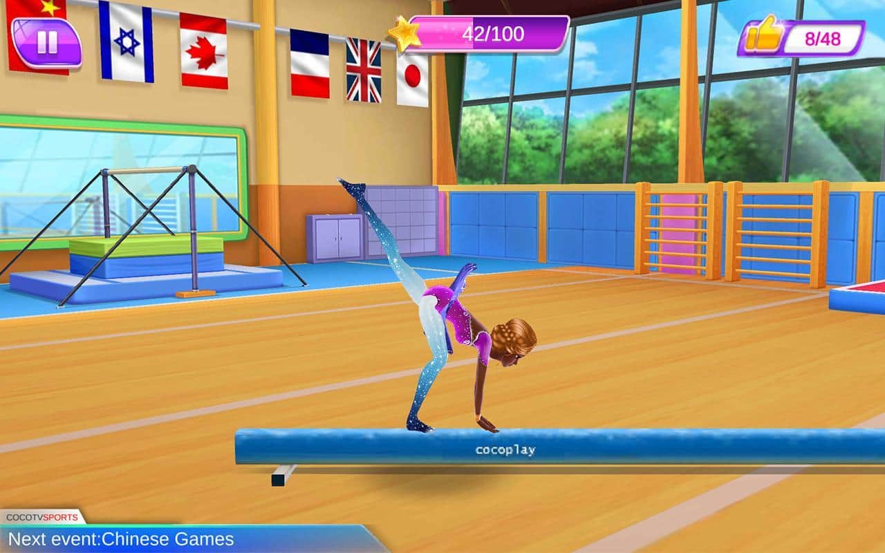 Gymnastics Superstar - Get a Perfect 10! – отличная спортивная игра на андроид, где вы должны завоевать золотую медаль в Олимпийских играх по гимнастике. Управляйте главной героиней игры, которую выбрали для представления своей страны на Олимпийских играх и которая должна показать отличные результаты. Тренируйтесь и добивайтесь хороших показателей, проделывая невероятные трюки на брусьях и на ковре. Нарядите свою спортсменку в ослепительный купальник, который будет выделять ее на фоне других, и не забудьте про макияж и прическу. Оттачивайте свои движения перед главным соревнованием и подключайте свою фантазию, чтобы разработать свою программу выступления. Победите на Олимпийских играх и заработайте золотую медаль.
