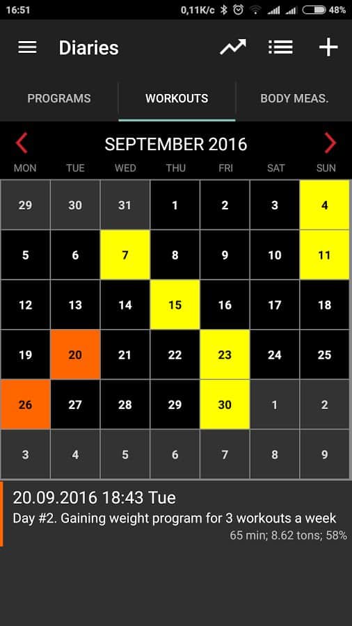 GymUP качая железо - представляем вашему вниманию достаточно хорошее и удобное приложение для составления индивидуальной спортивной программы. GymUP будет фиксировать результаты в удобном для вас виде, фиксировать параметры тела, так же приложением предусмотрено планирование нагрузок, опирающееся на статистические данные и многое другое. Выбирайте подходящую для себя программу тренировок и приступайте к выполнению упражнений. Оставайтесь всегда идеальны во всем!