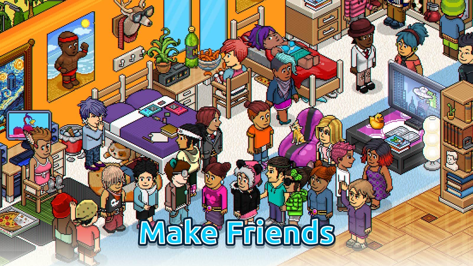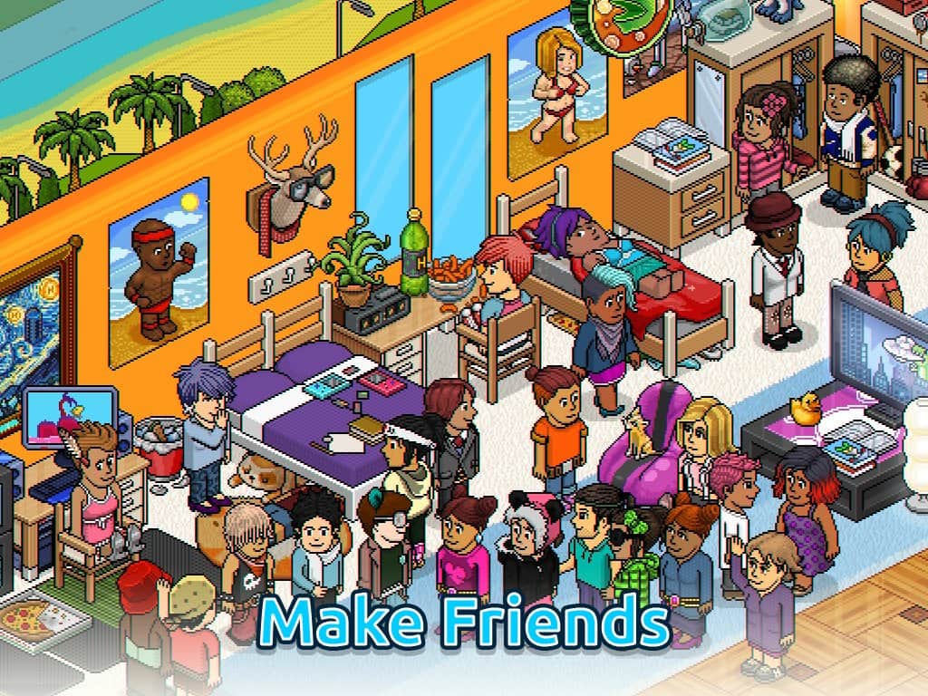 Но главный акцент Habbo - это общение между игроками, десятки миллионов участников зарегистрированы как постоянные посетители этого заведения. Знакомьтесь, дискутируйте и просто весело проводите время проживая в самом красивом отеле мира.