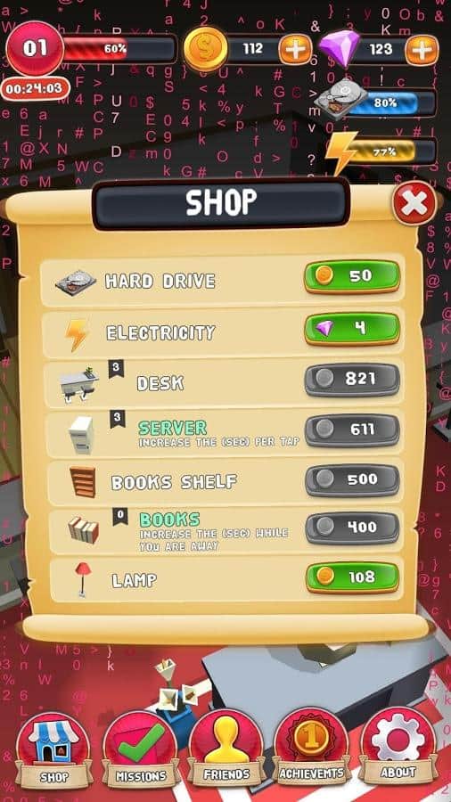 Hacker (Clicker Game) – кликер на андроид, где вы будете помогать полиции поймать как можно больше преступников. В этой игре вы будет играть за хакера, который нарушил закон переступив черту дозволенного и теперь вам придется поплатиться, либо остаток своей жизни провести в тюрьме либо начать сотрудничать с полицией. Примите взвешенное решение. Кликайте как можно чаще по экрану своего телефона и помогайте полиции найти различных преступников прячущихся в разных уголках мира. Докажите всем и в том числе полиции что вы отличный хакер и достойны выполнять все поставленные миссии. Набирайте очки и соревнуйтесь со своими друзьями.