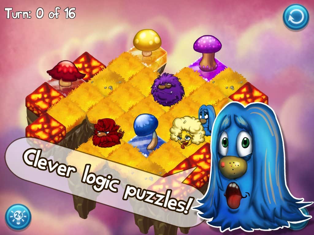 Hairy Balls - Замечательная красочная головоломка на андроид с забавными героями. Эти герои – волосатые шары-грибоеды, и ваша задача привести каждого к своему грибу. Интерес заключается в том, что они могут двигаться в любую сторону до тупика или препятствия. То есть вы не сможете повернуть там, где вы хотите. Вам нужно продумать ход каждого шара, чтобы он попал на определенное место. В игре три мира, и несколько десятков уровней в каждом.