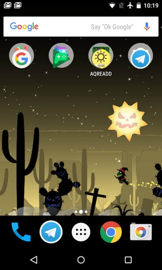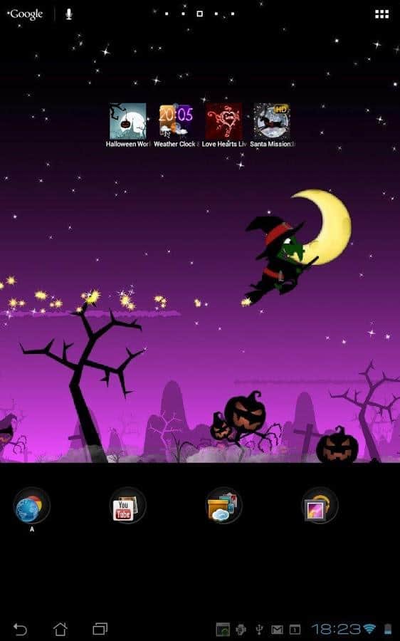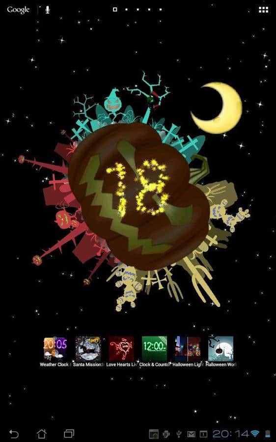 Halloween Live Wallpaper Bwch – продолжая тему Дня всех Святых на живых обоях для андроид, представляем вашему вниманию планету Хэллоуин в виде зловещей тыквы, где гармонично существуют три мира: Зловещий Лес, Преисподняя и Пустыня Забвения. Прикоснитесь к ведьме, и она покажет вам обратный отсчет дней до празднования Хэллоуина.Также есть режим автоматического переключения дня и ночи, в зависимости от вашего времени суток. Большое количество загробной и праздничной атрибутики, туман, пугающие деревья и многое другое. Веселого Хэллоуина вам!