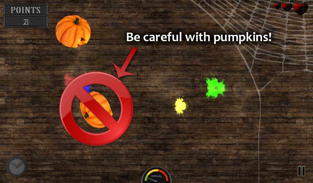 Halloween Massacre - игра на андроид, в которой вы с помощью своего пальца будете резать фрукты и сладости. Графика игры сделана в мистической атмосфере Хэллуина, и суть состоит в том что вам необходимо кромсать любые фрукты кроме тыкв.