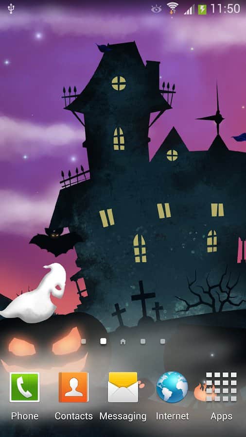 Halloween Night Live Wallpaper – подготовьтесь к празднованию Хэллоуина, украсив экран своего гаджета живыми обоями от BlackBird Wallpapers. Темные силуэты, летающие приведения и летучие мыши, холодный промозглый ветер разносит листву по заброшенным местам, статуи горгулий сидящих на воротах и тыква с горящими глазами – все это поможет не только настроится вам на нужный лад праздника, но и подарит незабываемые переживания, посмевшим взять ваш телефон.