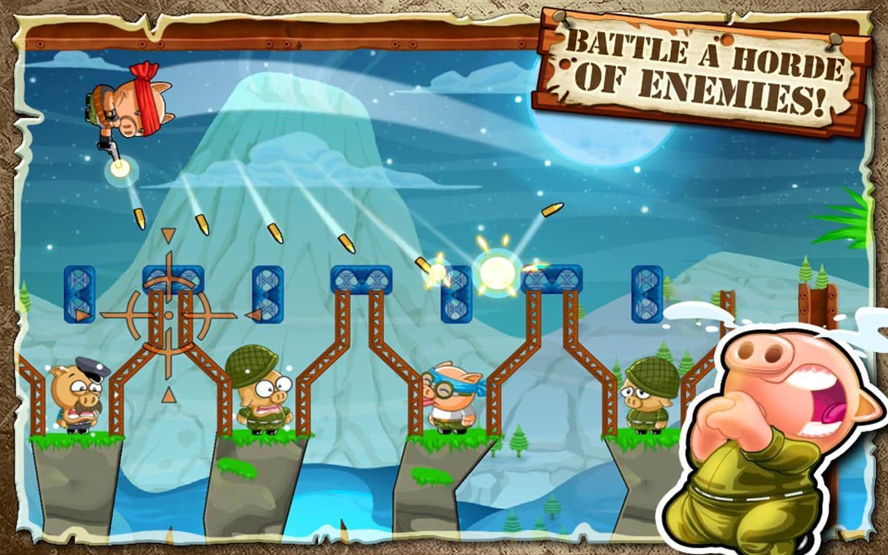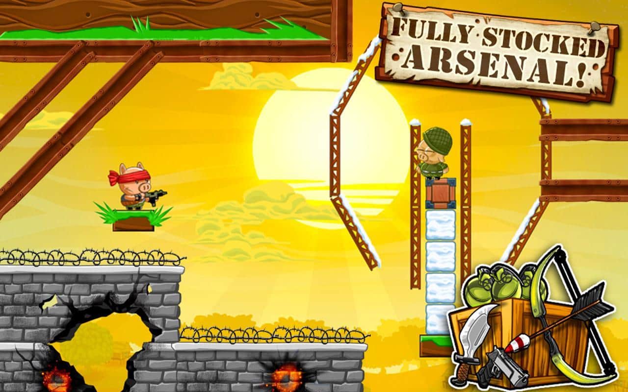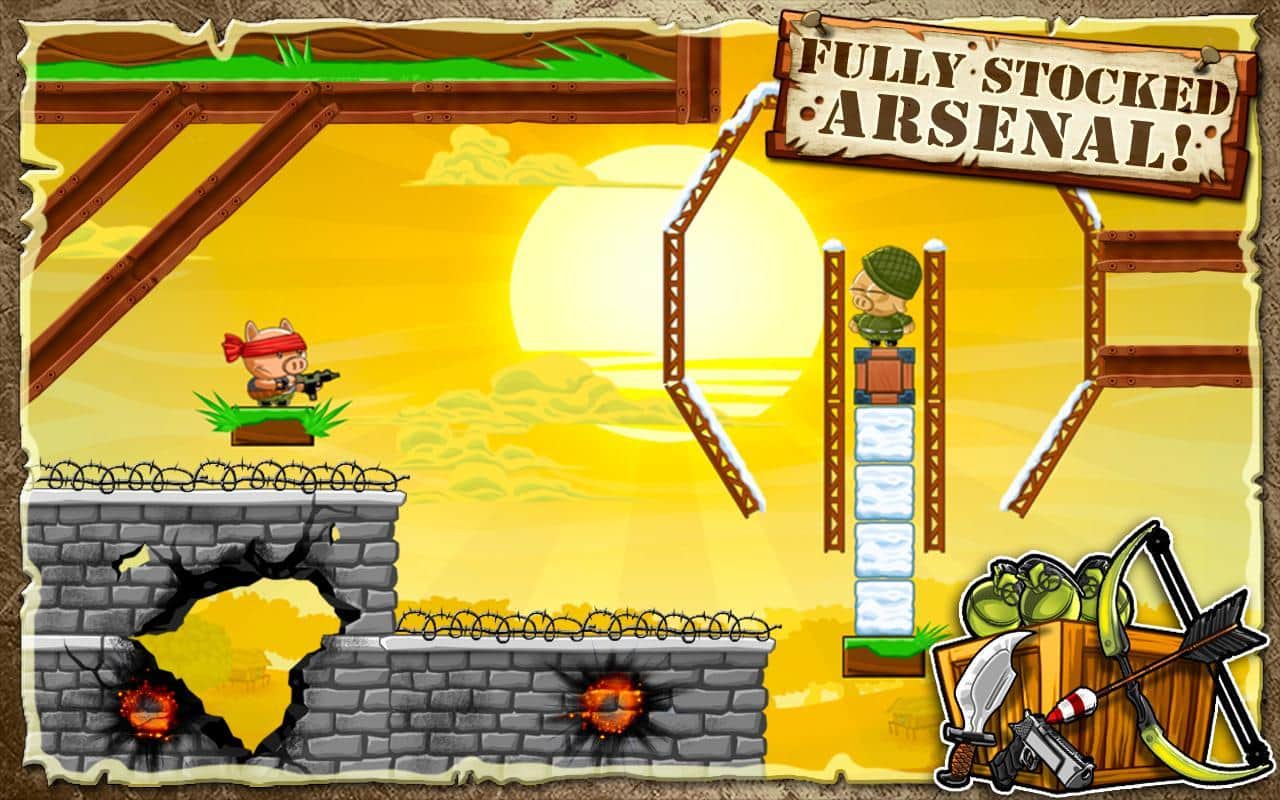 Новая аркадная игрушка Hambo содержит 200 уровней активной борьбы за освобождение друга Бэкона. Сражаться вам предстоит на стороне главного героя - отважного поросенка Хамбо. Цель ясна, а что же средства - в вашем распоряжении пистолет, узи и лук. Оружие разнообразно и стреляет абсолютно по-разному. Надо будет приноровиться, прежде чем пулять направо и налево! А еще мишени - не просто стреляем по прямой, а с помощью рикошета. Кроме этого иногда придется и ломать что-то по пути, а это замедляет движение снаряда и меняет его траекторию. И смотрите, чтобы рикошет не попал в вас самих! Есть над чем подумать в увлекательной аркаде Hambo для андроид!