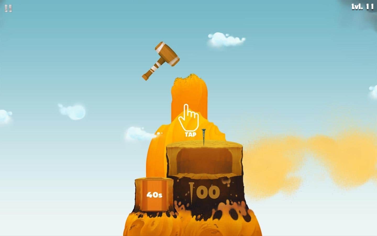 Hammer Showoff - увлекательный тайм-киллер в котором ваша главная задача заколачивать, при помощи тапов, гвозди в поверхность. Казалось бы ничего особенного, однако это далеко не так. Как выясняется на практике сделать это довольно непросто, гвозди гнутся и ломаются, к тому же уже вбитые гвозди мешают продолжать процесс, так что для того чтобы поставить очередной рекорд придется постараться. Но если вы все же освоите механику и приноровитесь, дело пойдет гораздо быстрей. Для большего разнообразия разработчики реализовали 4 различных мира, каждый из которых выполнен с собственным звуковым сопровождением, в каждом из миров по 20 уровней с нарастающей сложностью, десять различных молотков и 12 видов гвоздей, с различными свойствами.