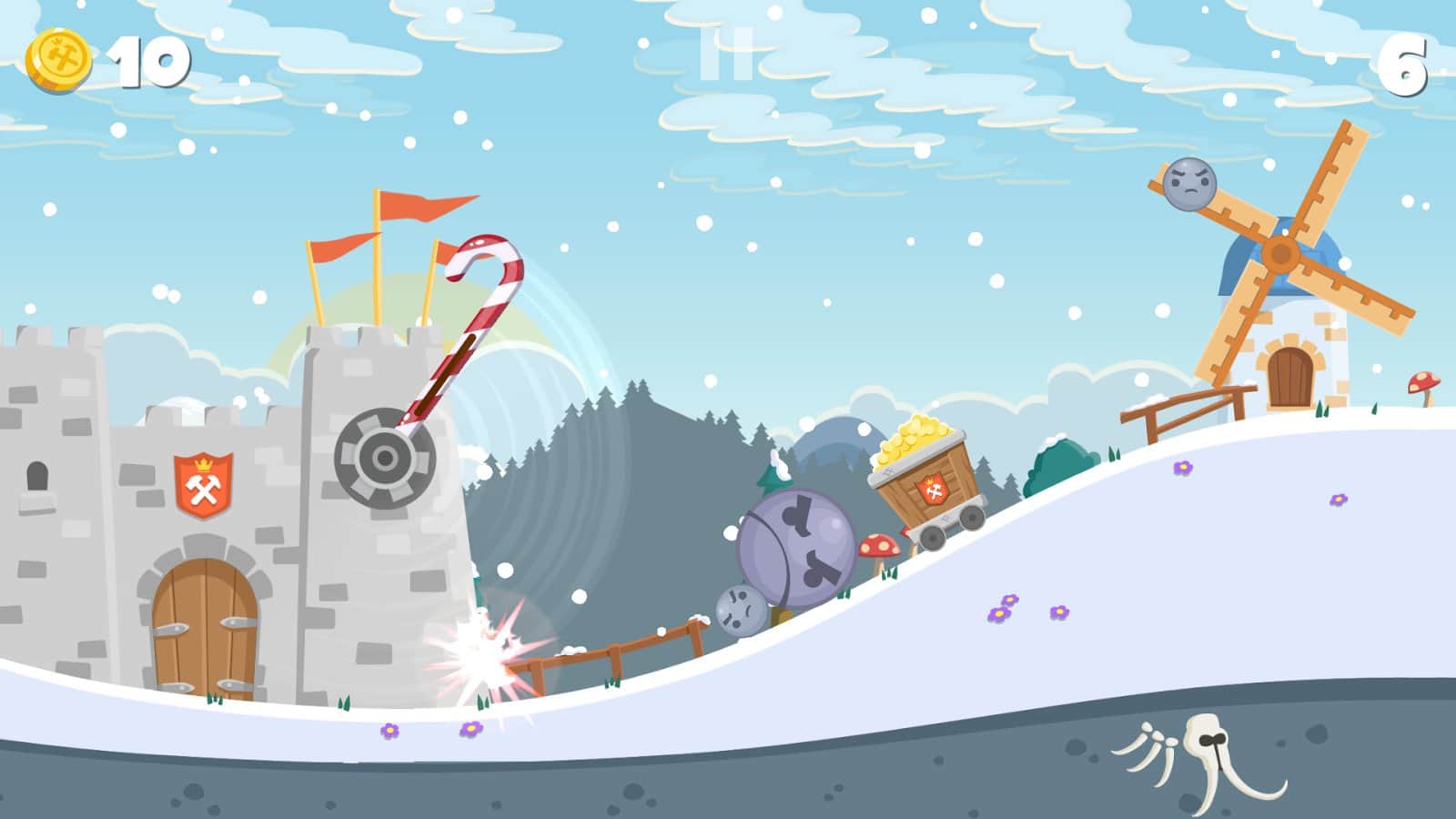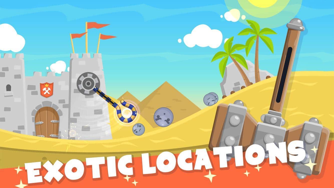 Hammer Time! – возьмите под свой контроль огромный молот и с помощью него защитите замок от разрушения. В этой игре вам предстоит защищать замок, на который катятся с горы огромные валуны. В нужный момент касайтесь экрана и приводите в действие свой молот, который способен разбить любые валуны и камни. Вращайте молот и наносите разрушительные удары. За некоторые разбитые камни вы будете получать ценные награды и призы. Открывайте новые молоты, каждый из которых имеет неповторимый вид и свойства. Игра порадует игроков отличной графикой, многочисленными молотами, таблицей лидеров и сменой погодных условий.