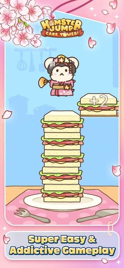 Hamster Jump: Cake Tower - постройте огромную башню из тортиков вместе с вашим подопечным грызуном! Игровой процесс довольно прост: ваш хомячок прыгает по нажатию, пока слева и справа на него наезжают тортики. И вы, прыгая и прыгая, должны построить самую высокую в мире башню из тортиков. После же, вы можете построить своё хомячье поместье, где можете тихо жить со своей семьёй. Во время игры вы можете собирать разливные одежки, фоны и вкусности, заменяющие вам тортик. Но помните: аккуратность - ваш лучший друг!