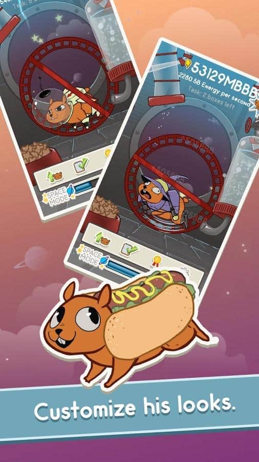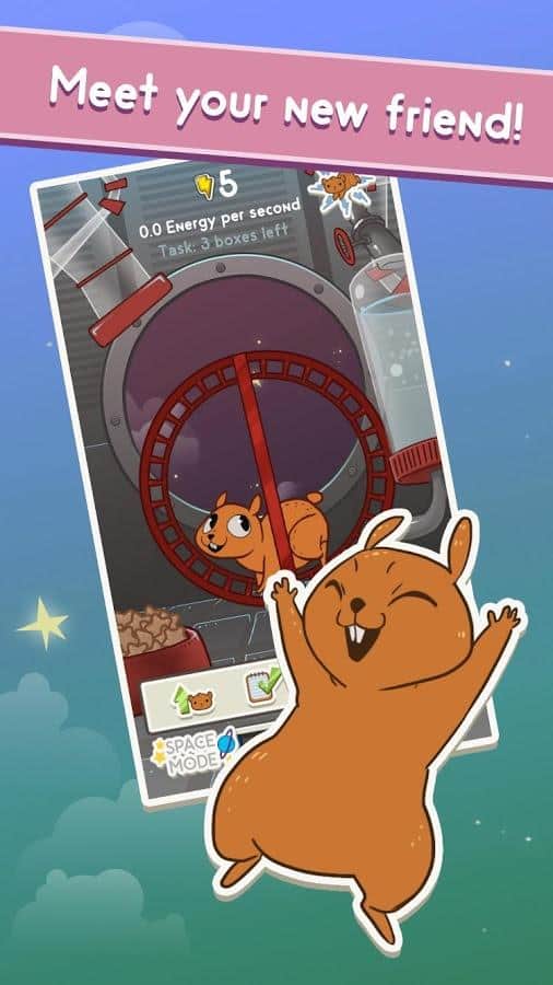 Hamster Universe – увлекательный симулятор на андроид, в котором вам предстоит управлять хомяком. Жизнь хомяка очень скучна и однообразна, он только ест и спит и иногда бегает в колесе. Но однажды хомяк решил, что он достоит чего-то большего в этой жизни и решил отправиться в космос. Соорудив высокотехнологический корабль наш герой, собрал союзников и за счет вращения колеса решил питать энергией корабль. Помогите хомяку вращать колесо так чтобы генерировать энергию и отправиться в увлекательное космическое путешествие. На собранные баллы одевайте своего героя, подготавливая его для полета в космос в специальные костюмчики и шапочки.