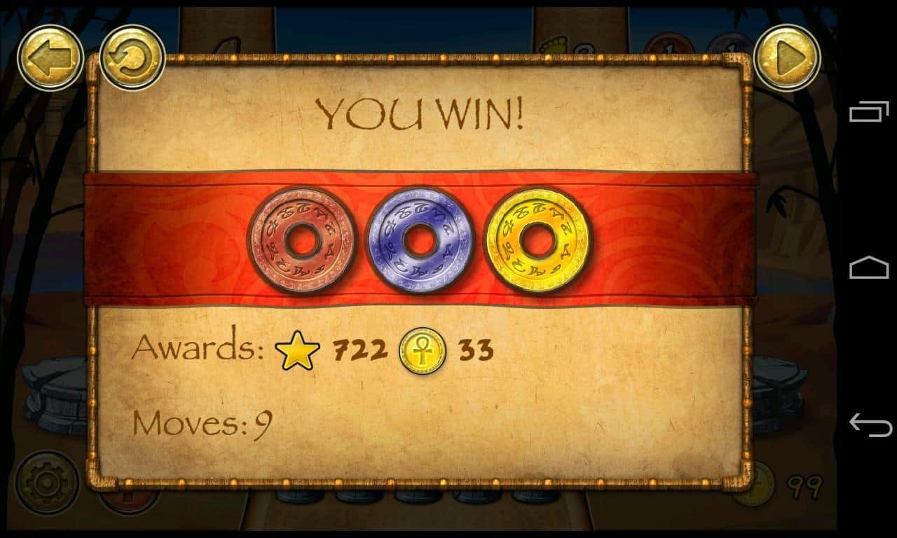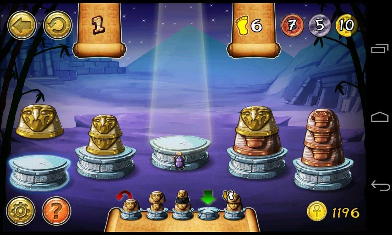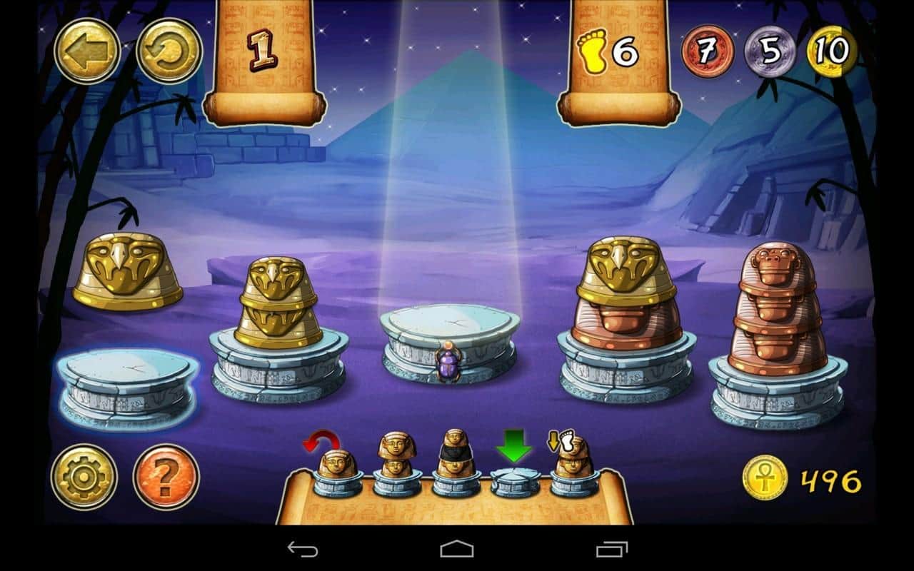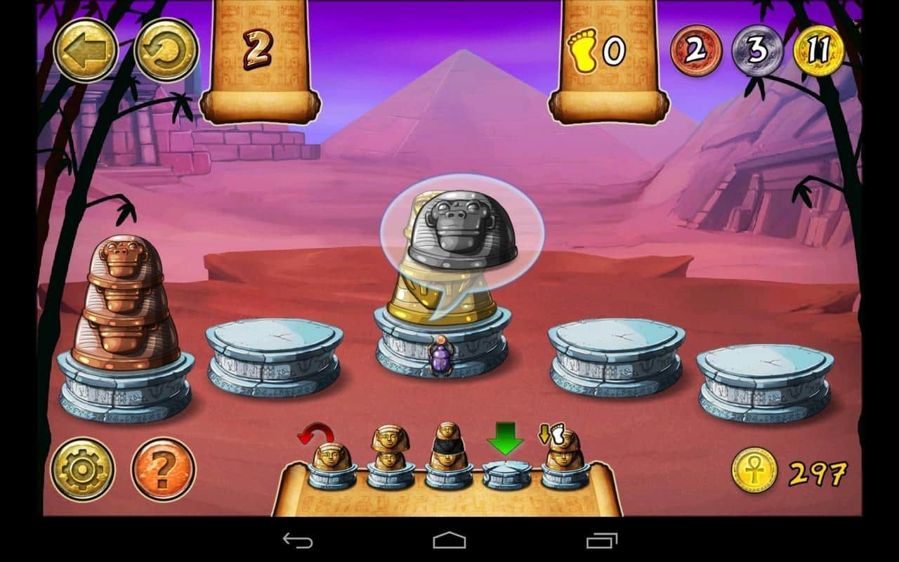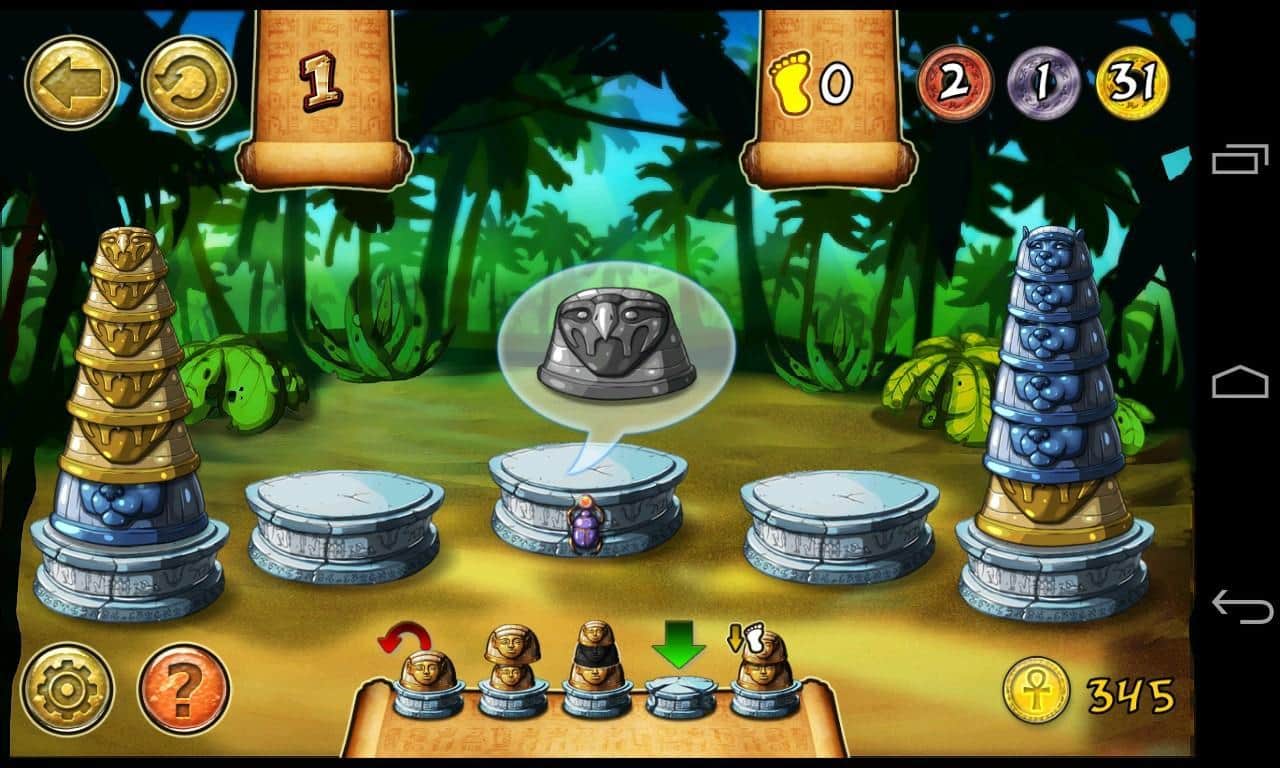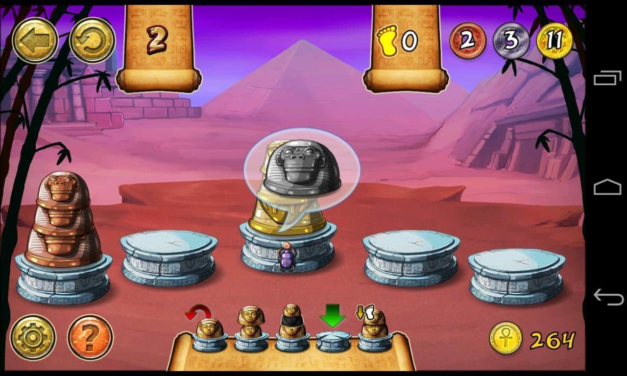 HanoiTowers - Интересная головоломка на андроид, которая перенесет вас в мир античности. На поле расположены фигуры разных цветов в случайном порядке. Ваша задача – создать пирамиду собирая фигурки одного цвета. Чем меньше шагов в уровне вы произведете, тем больше достижений и звезд вы получите. Кроме того, в игре действуют некоторые правила: нельзя класть большую фигурку на меньшую, или класть фигурки одинакового размера друг на друга.