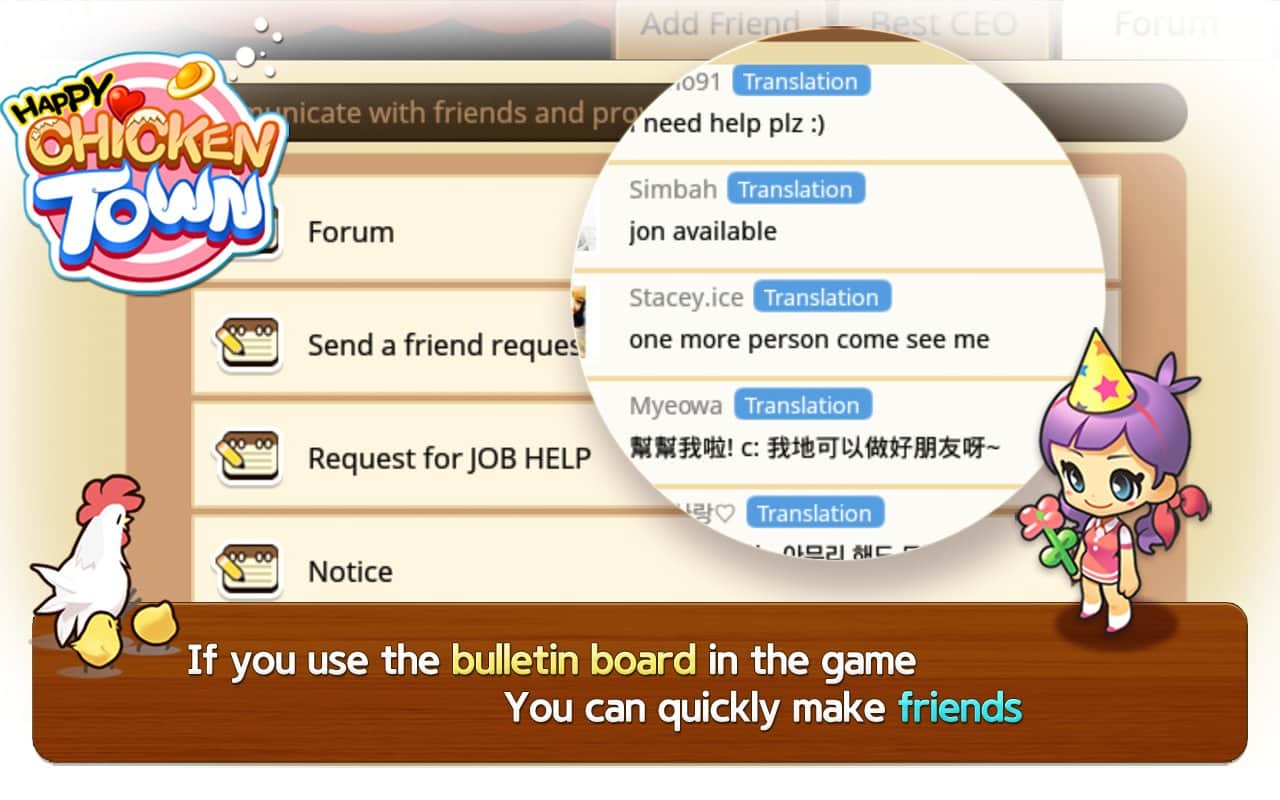 Жанр "Ферма" ужу достаточно давно и довольно успешно занимает собственную нишу в виртуальном мире. На заре своего появления это были простенькие игры в казуальном стиле привлекающие игроков простым геймплеем и красочной графикой. По мере развития фермы становились все сложнее и порой вполне могли конкурировать с градостроительными симуляторами, но те старые фермы до сих пор не теряют своей актуальности и по сей день пользуются спросом. Happy Chicken Town - классическая ферма с простым управлением, множеством заданий, взаимодействием между персонажами, широким набором возможностей и красочной графикой. Геймплей объединяет в себе элементы производства, создания, строительства, а так же более простые модели. Не забыли разработчики и о социальной составляющей и вы сможете посетить фермы своих друзей или других игроков.