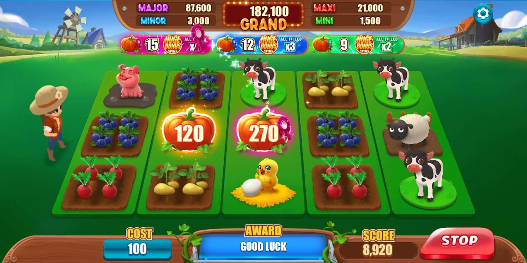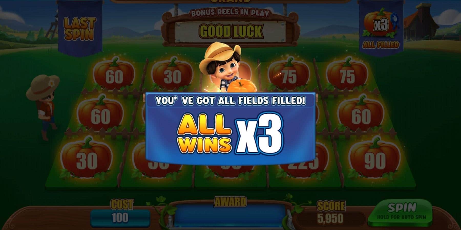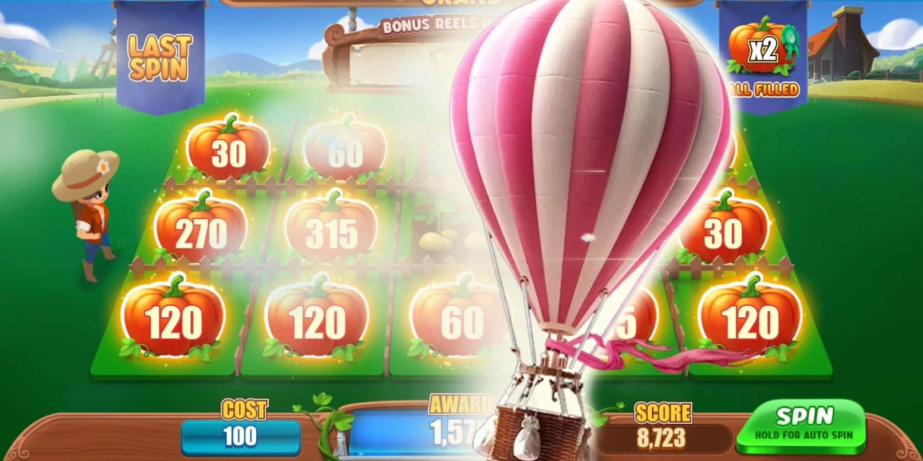 Happy Farm Slots - Даже на ферме у каждого фермера есть возможность испытать свои возможности на тыквенном карнавале! Отправляйтесь на это незабываемое событие и попробуйте сыграть в игровом автомате, чтобы выиграть драгоценные вознаграждения. Получайте полезный опыт, обменивайте ресурсы на необходимые предметы, вращайте барабан и наслаждайтесь интересным процессом, который принесет вам массу наград! Такой шанс появляется только раз в году, не упустите его в этот раз и приложите максимум усилий, какие только сможете.