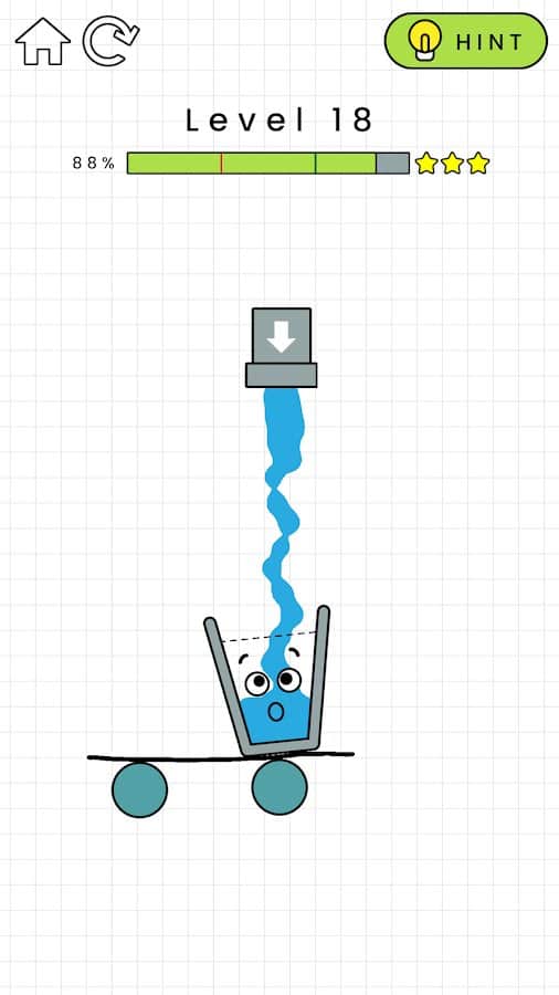 Happy Glass – увлекательная головоломка на андроид, где вы будете заполнять водой стакан. В этой игре вашей задачей будет рисовать линии так, чтобы при запуске воды она попала прямиком в стакан. Тренируйте свою сообразительность и логику и тщательно продумывайте каждое свое действие, чтобы завершить уровень и получить по три звезды за каждый из них. Играйте в эту игру в любое свободное время и наслаждайтесь минималистичной графикой, многочисленными уровнями, сложность которых будет постепенно увеличиваться и расслабляющими темами.