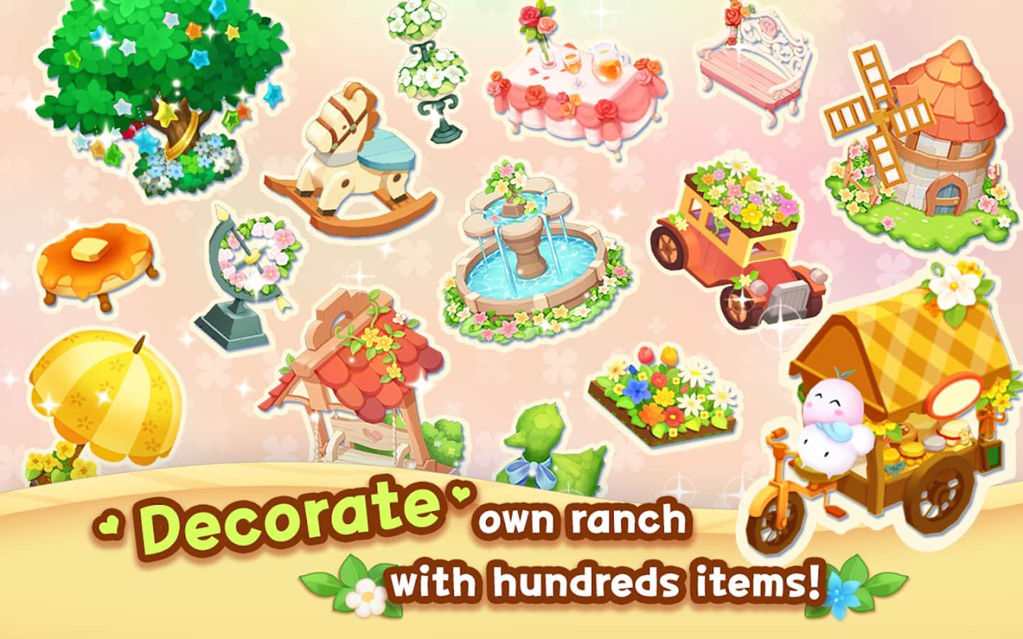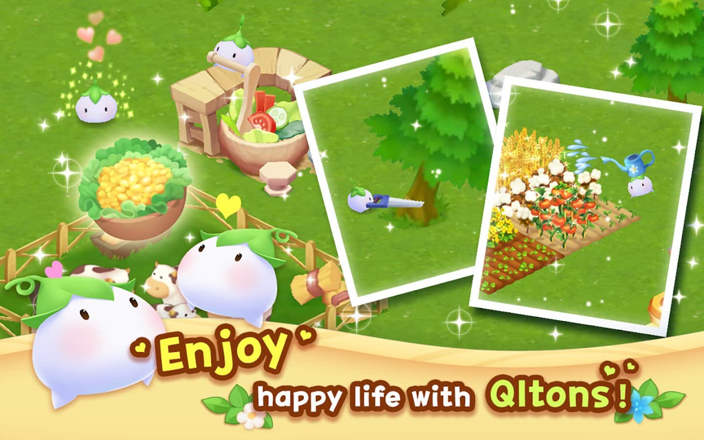 Happy Ranch – увлекательная игра на андроид, где вы будете создавать счастливое ранчо со своими новыми друзьями QLTONs. Играйте в эту игру и постройте свое ранчо с щедрыми духами QLTONs которые сделают вашу работу на ранчо более приятной и веселой. Собирайте урожай, производите различные товары и занимайтесь торговлей, посетите ранчо своих друзей и заботьтесь о милых животных. Расширяйте и улучшайте свое ранчо и выращивайте на нем новые культуры и получайте свежие овощи. Готовьте различные блюда с друзьями и продавайте их своим соседям и товарищам.