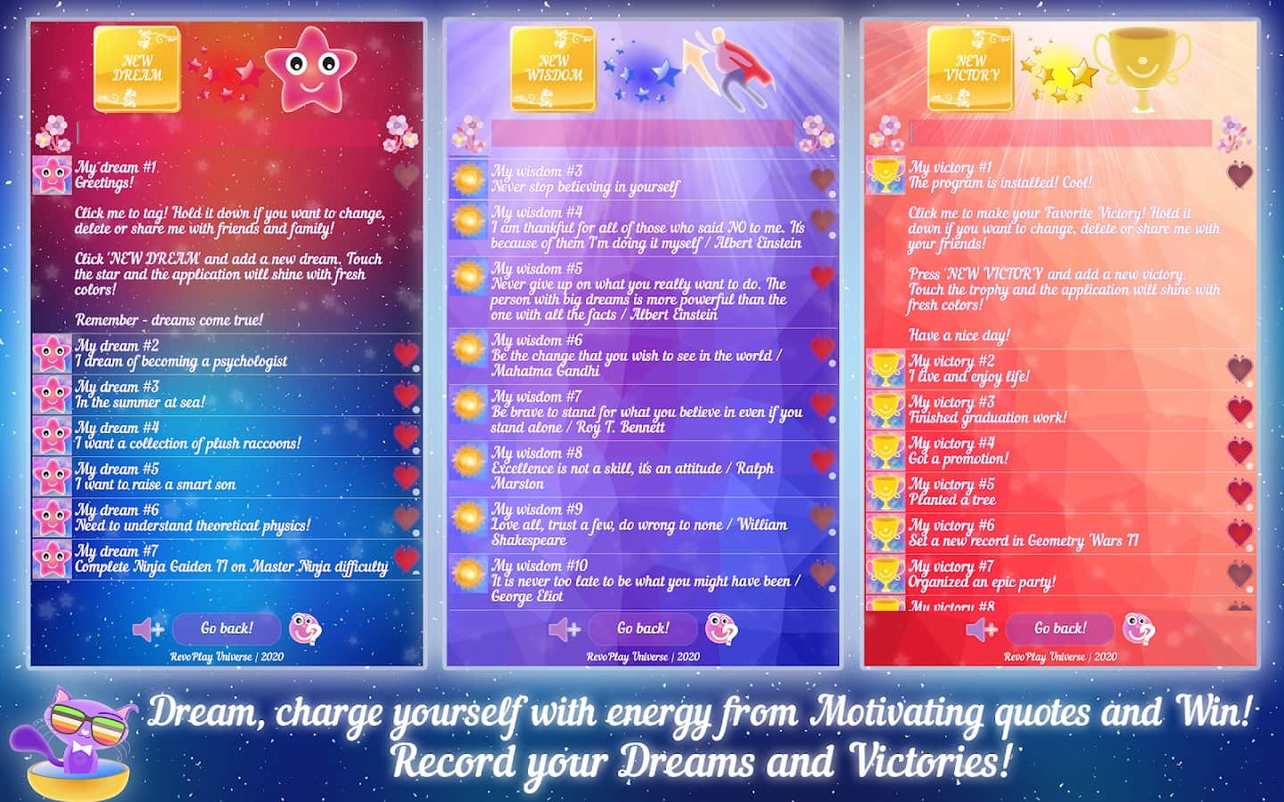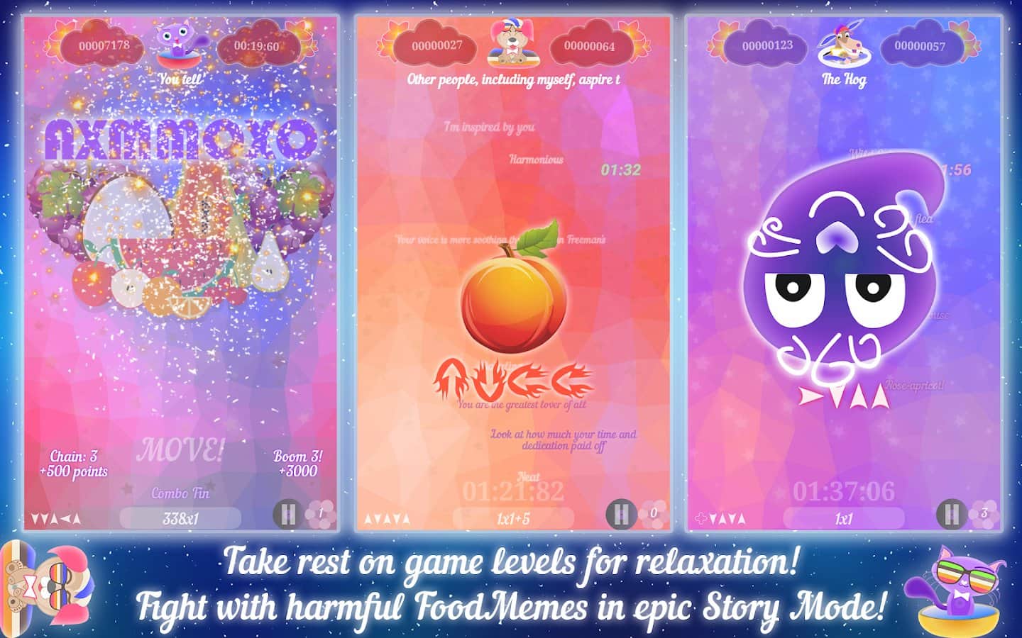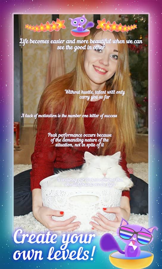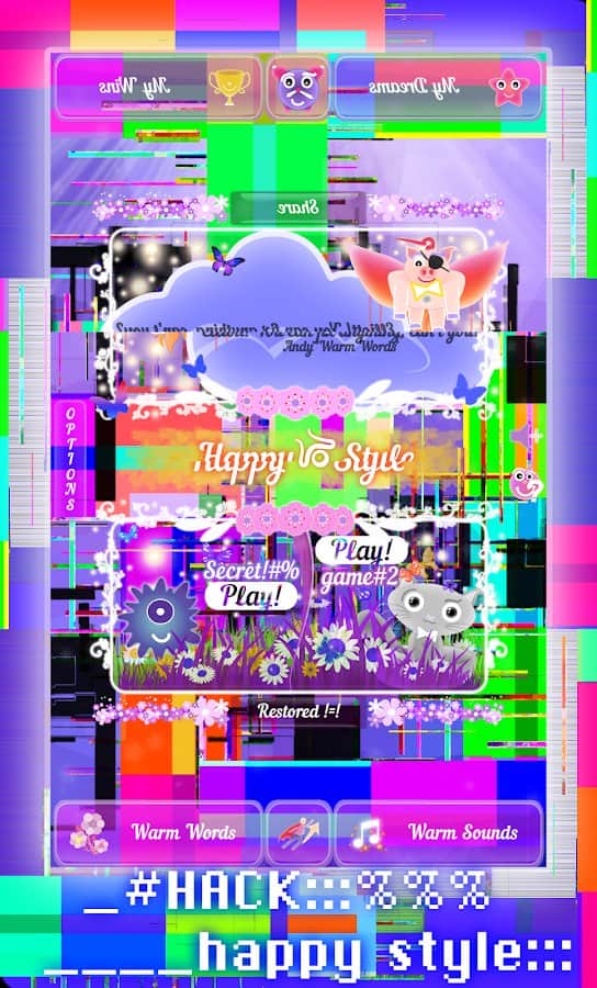 Happy Style - Play, Relax, Dream, Live! – это нечто новое в жанре Werewolf или «Перевертыш». Это приложение для Андроид на каждый день, которое сможет расслабить, взбодрить и подарить хорошее настроение. Эта игра очень разнообразна. Во-первых, это приложение для поднятия боевого духа, которая поддержит вас теплым словом или же вдохновит на новые свершения и подвиги. Когда вы совсем разбиты или не хотите ничего делать, просто запустите Happy Style. Сразу вспомните все поводы гордится собой, а также мечты и желания! Во-вторых, это нестандартная аркада с динамическим игровым процессом, которая задействует все хорошее слова, что вы когда-то говорили. Игра создана с единой целью – успокоить раздражительных и нервных людей, сберечь их нервы. Попутно есть также сюжетная компания, где вы узнаете абсолютно чужую, но в тоже время свою историю.