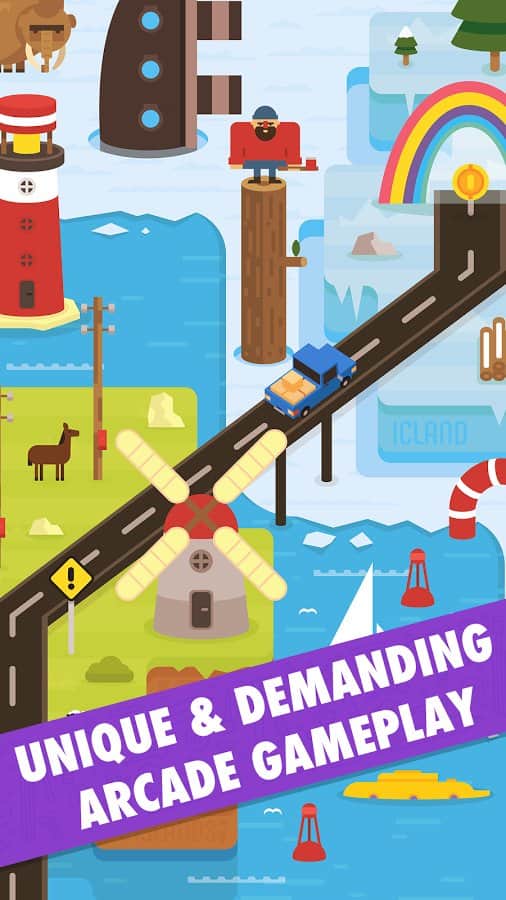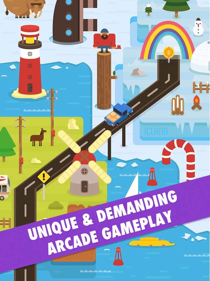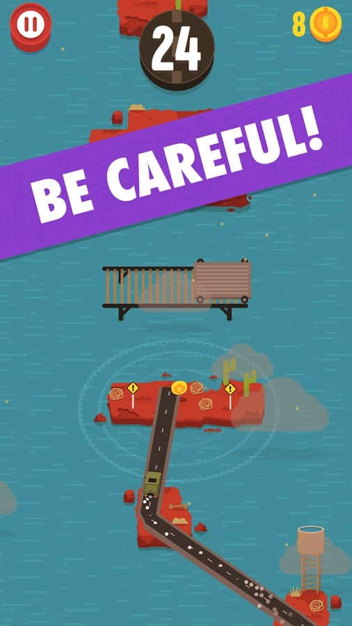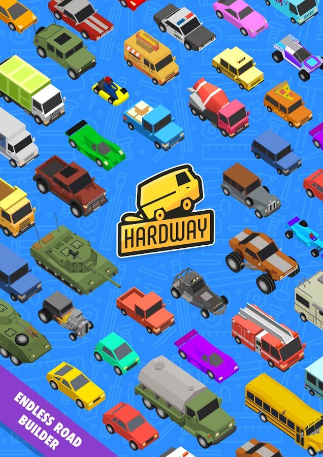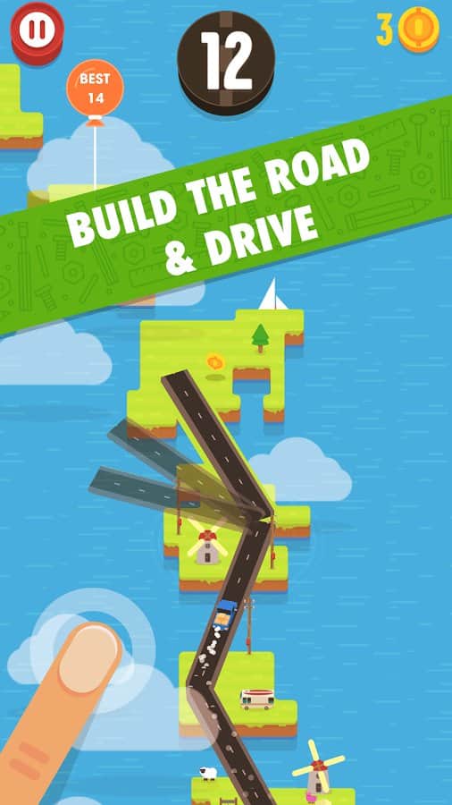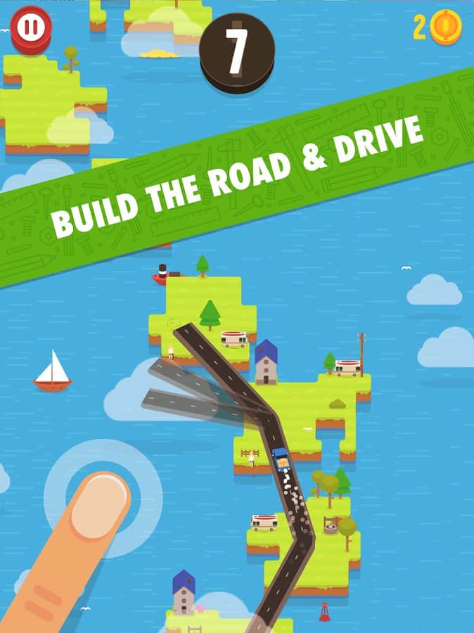 Hardway - Endless Road Builder - Простенький таймкиллер который проверит вашу реакцию. Все что вам нужно делать это во время отпускать палец, что бы строить дорогу между островами. Постепенно скорость вращения дороги будет увеличиваться а острова будут становится все меньше и меньше. По сути в неё можно играть бесконечно, и все зависит только от ваших способностей. Для того что бы внести дольку разнообразия, вы сможете покупать новые автомобили, но это ни на что не влияет.