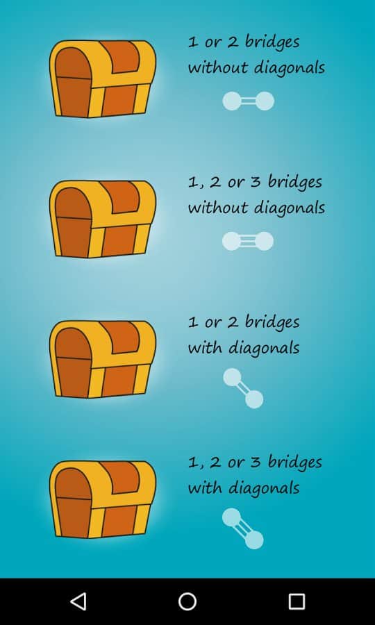 Hashi: Building Bridges – интересная головоломка на андроид, сделанная по подобию знаменитой игры Hashiwokakero. В этой игре вашей главной задачей будет соединять между собой острова находящиеся в океане мостами. На каждом острове указано, сколько мостов вы можете построить к нему. Стройте мосты и следите за тем, чтобы они не пересекались между собой и образовывали непрерывную связь между островами. Игра порадует игроков удобным и понятным управлением, а также возможностью обучения в специальном режиме. Каждый уровень этой игры имеет только одно решение, так что тщательно продумывайте каждый свой ход и решайте непростую головоломку. В игре вы найдете несколько уровней сложности и типов головоломок, а также более 20000 задач.