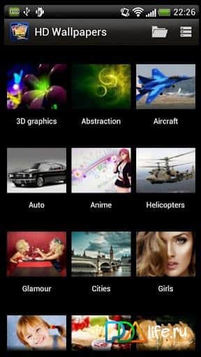 HD Обои для Android - целая картотека красивейших и качественных обоев для вашего смартфона. Здесь вы наверняка сможете подобрать соответствующую картинку на рабочий стол. Приложение разделено на 41 категорию - от природных пейзажей, животных до компьютерных тем, спорта, кино, приколов и прочего. Основные преимущества приложения: